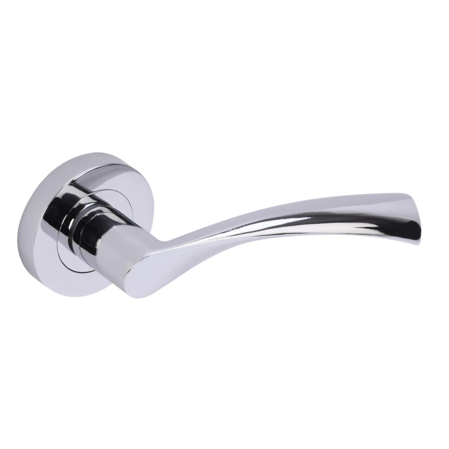 A modest but attractive design that would be a beautiful addition to any home. The Rhine comes finished in a chic polished chrome finish. Our handle packs come with everything you need to hang your door, including 3 hinges and compatible latch. Also available for standard doors and bathroom doors too.