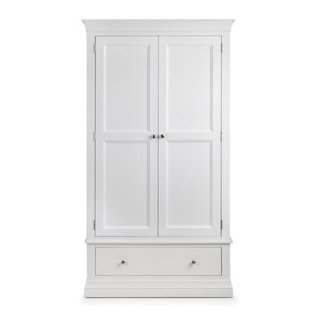 The Clermont Bedroom Collection is finished in a striking white lacquered finish, with simple clear lines that add a feeling of light and space. Crafted from Pine and MDF, featuring brushed steel handles, this elegant French inspired design is suitable for both contemporary and traditional settings. The Clermont 2 Door 1 Drawer Wardrobe offers a generous hanging space, along with a full width drawer for bulkier knitwear.