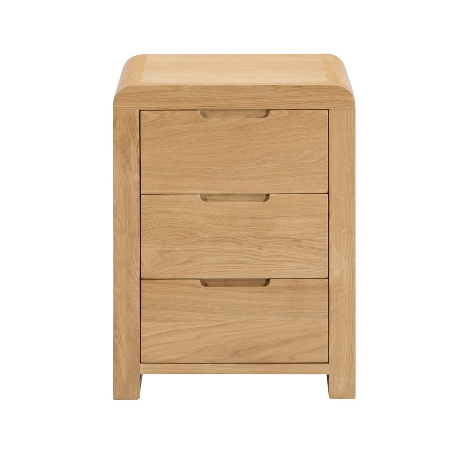 The Curve bedside table is finished in oak and complimented with curves which provides sophistication and elegance. With 3 practical drawers for hiding clutter.