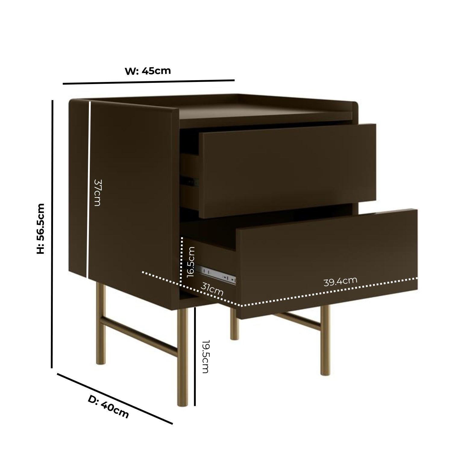 - Dimensions: W45 x D40 x H56.5 cm