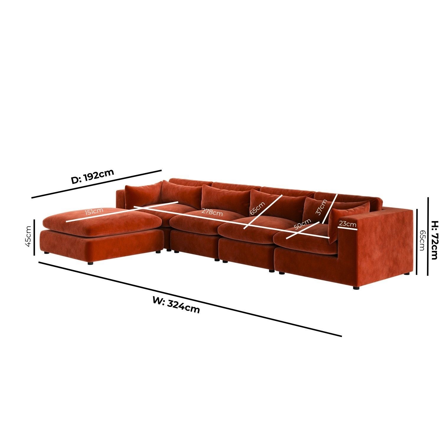 - Dimensions: W324 x D192 x H72 cm