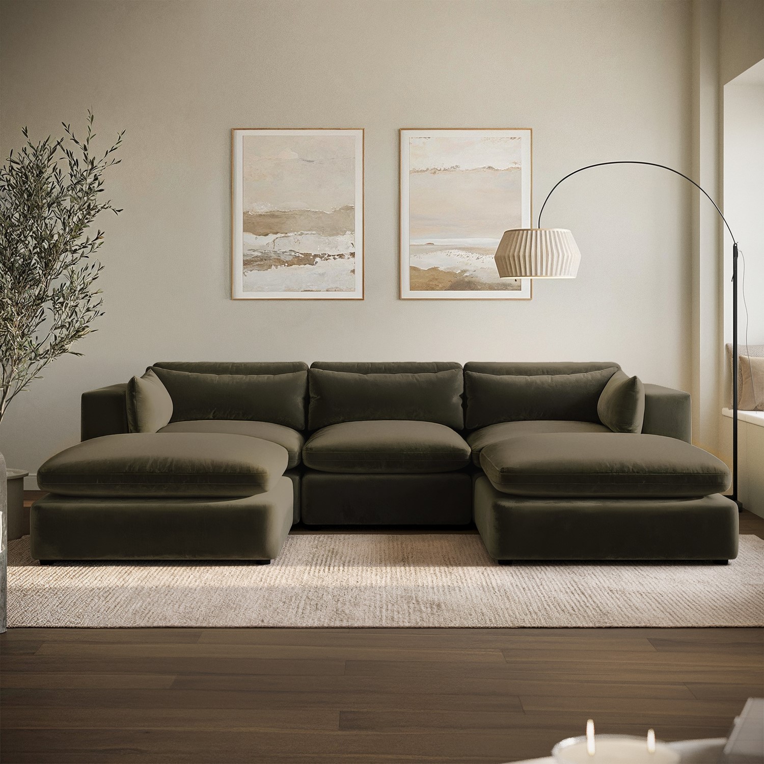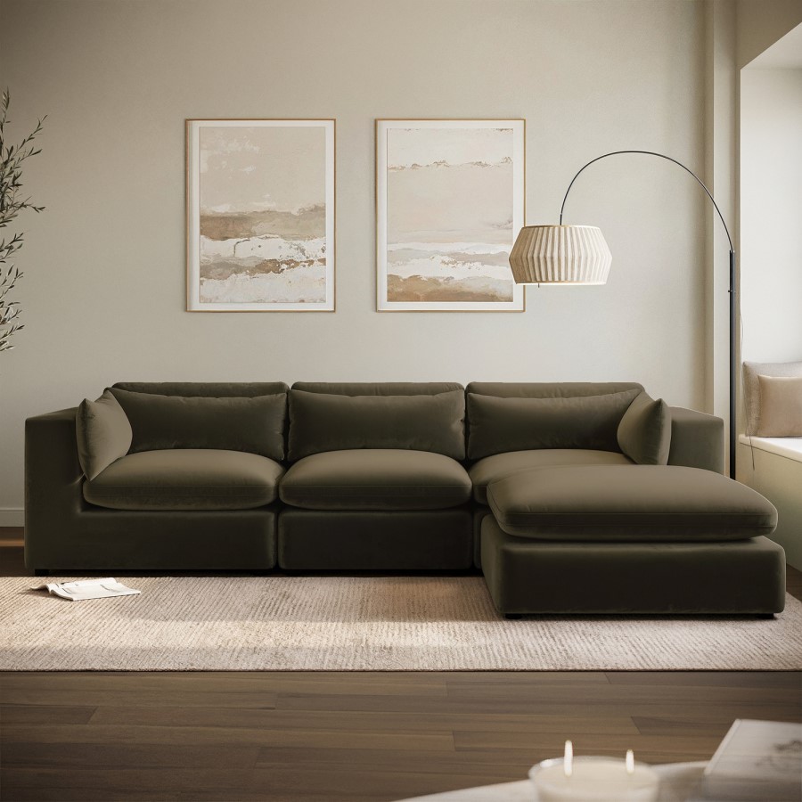 Perfect for a modern living room, the Hudson Khaki Green L-Shaped Sofa provides stylish seating for up to 4 people. The green velvet finish adds a pop of colour to your space whilst the plush, foam-filled cushions provide ultimate comfort, perfect for movie night! For added convenience, the cushions are completely removable which makes cleaning super easy. Built with a sturdy wooden frame, this sofa is made to last.