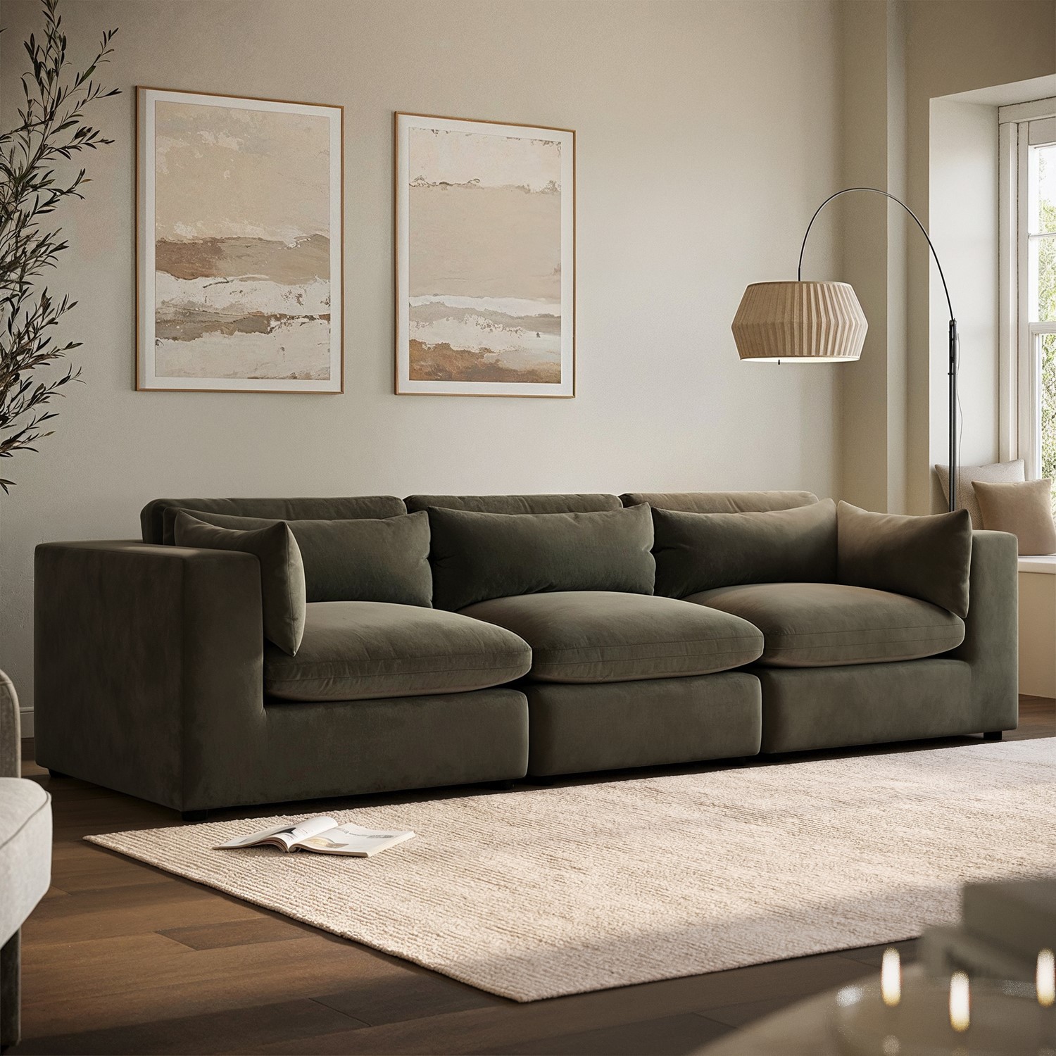 Premium Velvet Upholstery: Soft, durable velvet in khaki green adds a luxurious, modern elegance to your lounge.