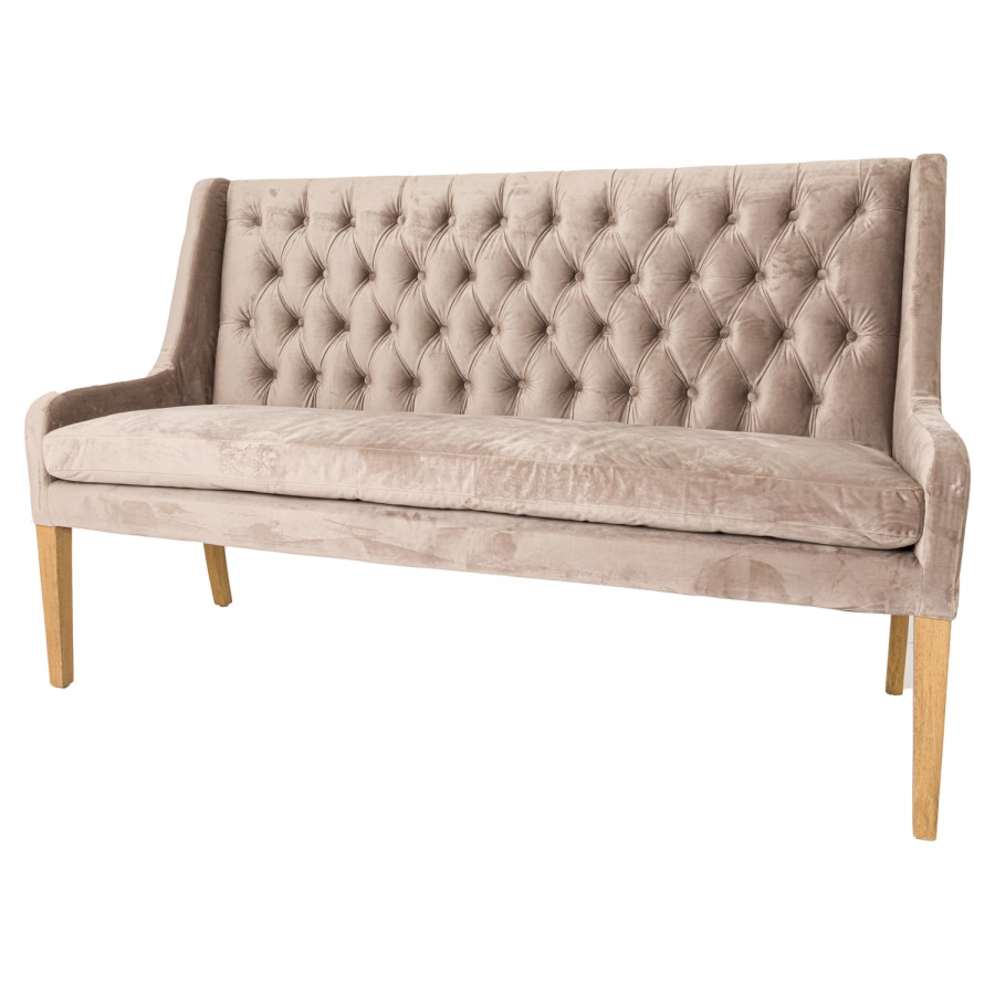 The stunning Henley dining bench is upholstered in a luxurious mink velvet fabric. The sturdy wooden legs and buttoned back are the perfect finishing touches. Pair with your favourite dining table and dine in comfort.