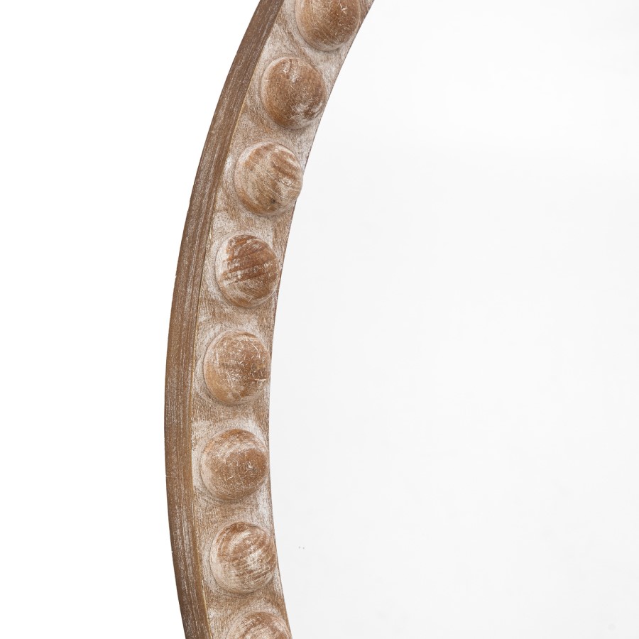 This charming round mirror beautifully blends vintage allure with rustic elegance, making it a standout feature for any room. The weathered finish lends it a unique character, creating a warm and welcoming feel in your home.
