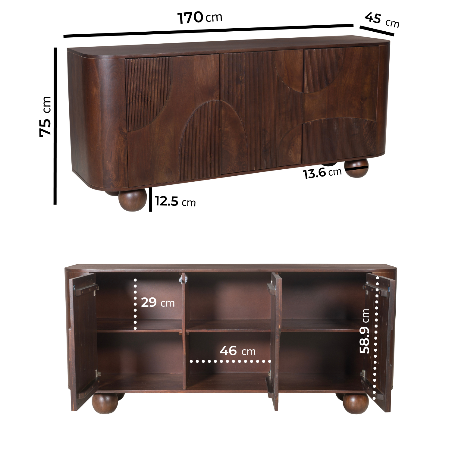 Unique Ball Feet: Distinctive rounded ball feet elevate the sideboard, adding a stylish twist to its clean lines and sturdy design.