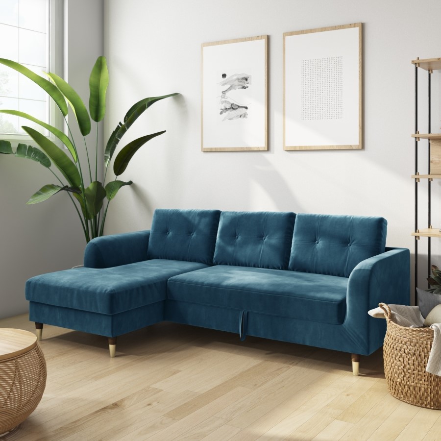 Add a sophisticated touch to your living area with this Sutton sofa bed. Beautifully upholstered in a plush teal blue velvet with stylish button detailing, it's guaranteed to make an impact. It's so easy to convert it to a bed; just lift the seat, pull out the bed and rest on the legs. It makes perfect extra lounging space for those lazy evenings watching TV as well as last-minute sleepovers, so you'll always be ready when guests call and end up staying overnight. It's so versatile, and you don't have to compromise on the appearance either. It comes available with the chaise as right-hand facing and in other colourways.