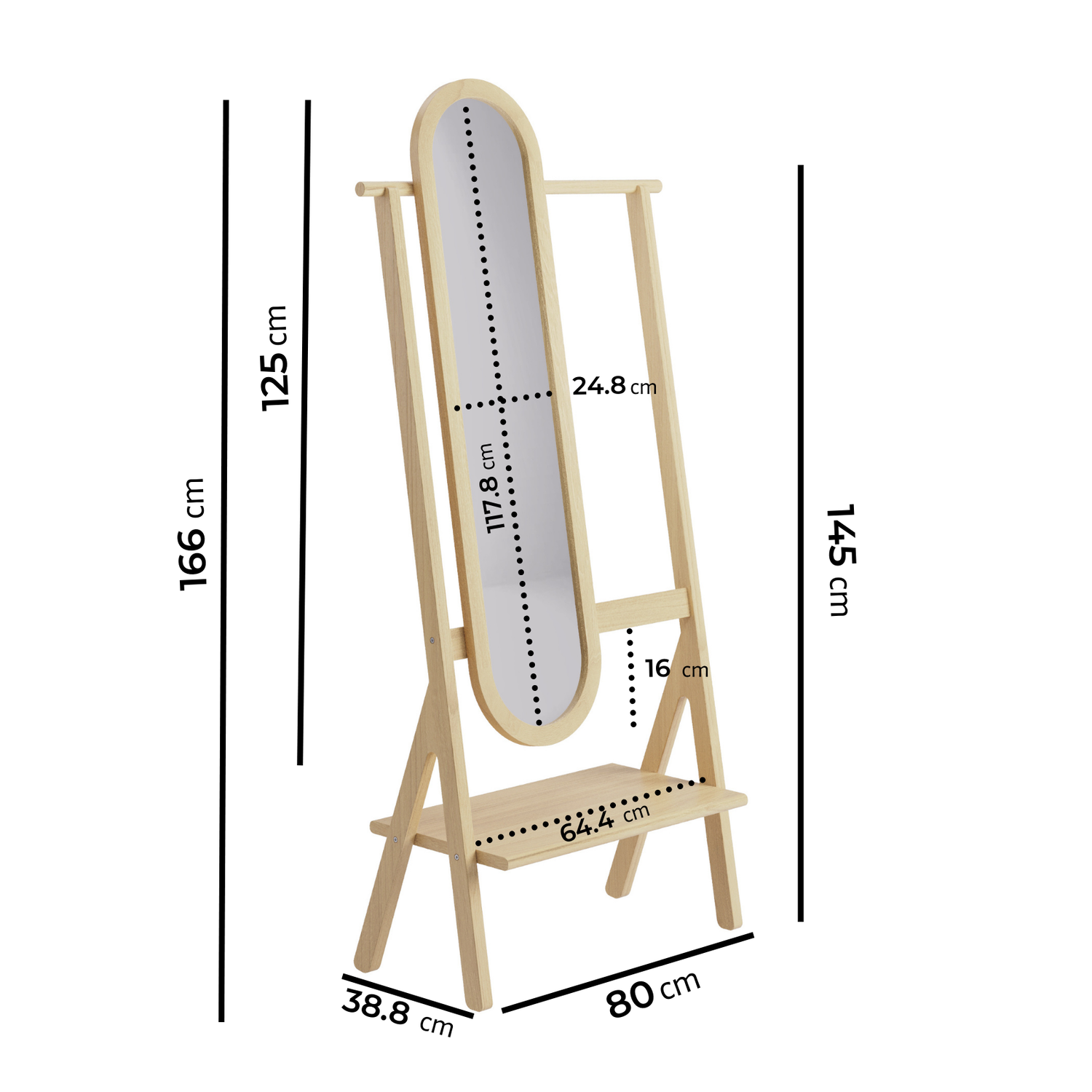 Space-Saving Design: Full-length mirror combined with a built-in hanging rail for maximum functionality in compact areas.