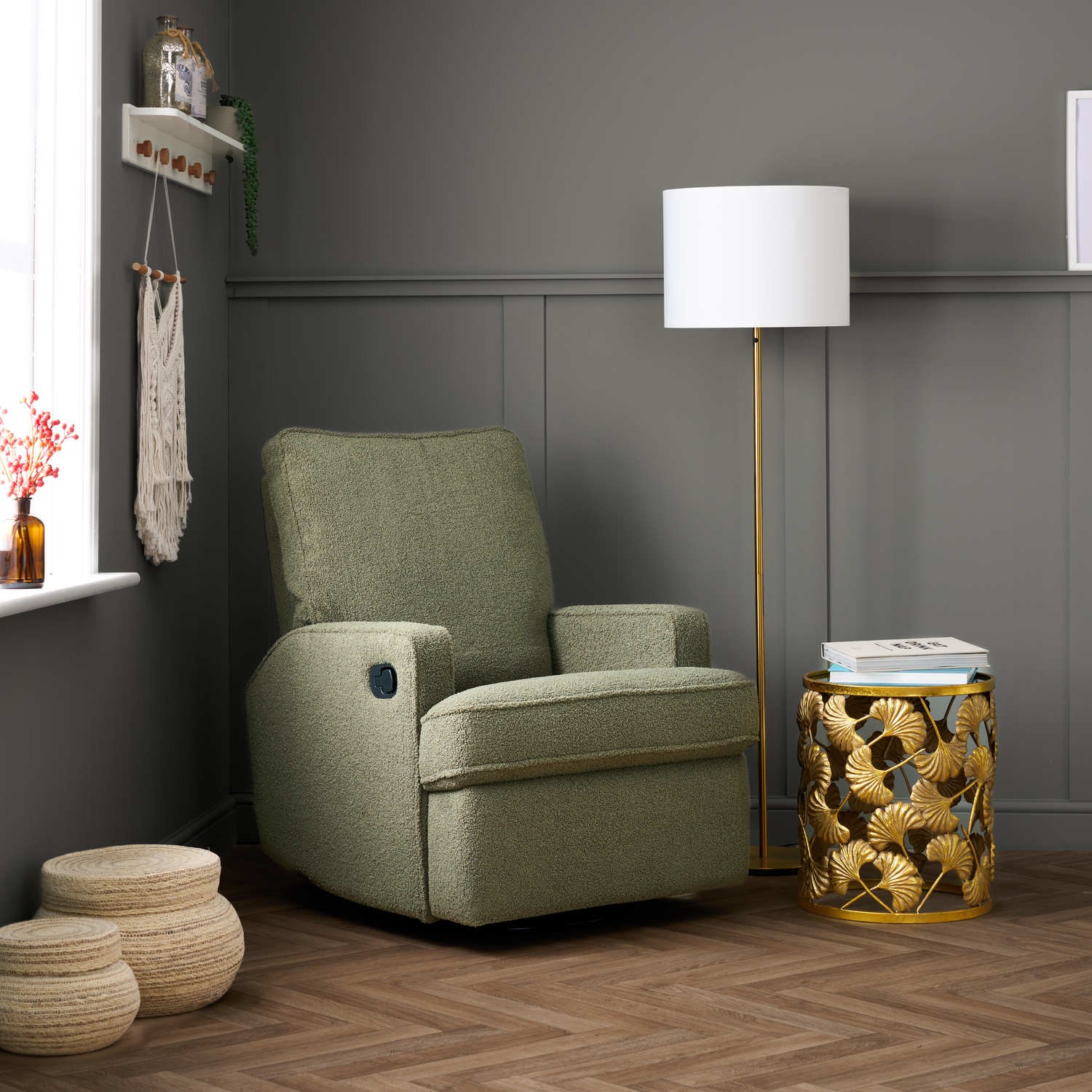 Designed for comfort and calm, the Madison Swivel Glider Recliner Chair is your perfect companion for feeding, soothing, or unwinding with your little one. Upholstered in soft olive teddy fabric, it offers warmth and plush comfort as you glide, swivel, or recline. The smooth, near-silent motion and padded armrests provide effortless relaxation, while the supportive backrest keeps you comfortable through every cuddle and bedtime story.