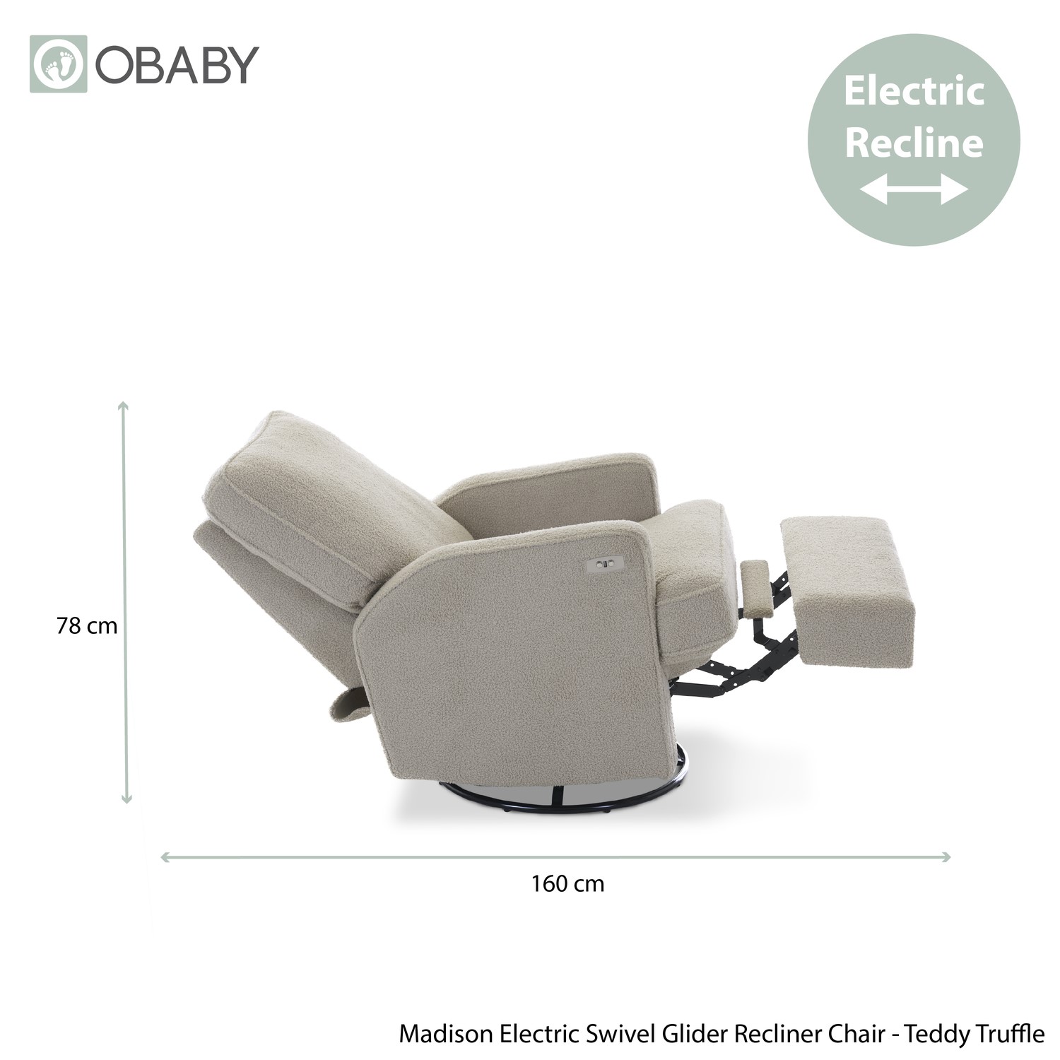 The Madison Electric Recliner Chair combines comfort, style, and practicality for modern nurseries. Wrapped in ultra-plush teddy fabric, it offers a warm, luxurious feel perfect for quiet moments with your baby. The smooth electric recline and gentle glider motion let you find your ideal position effortlessly, while the built-in USB port keeps your devices charged and close at hand. With its spacious seat and supportive design, the Madison ensures both you and your little one can relax in complete comfort.