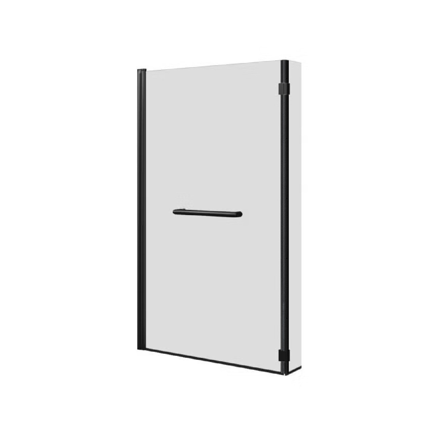 - Hinged Black bath screen with return and towel rail
