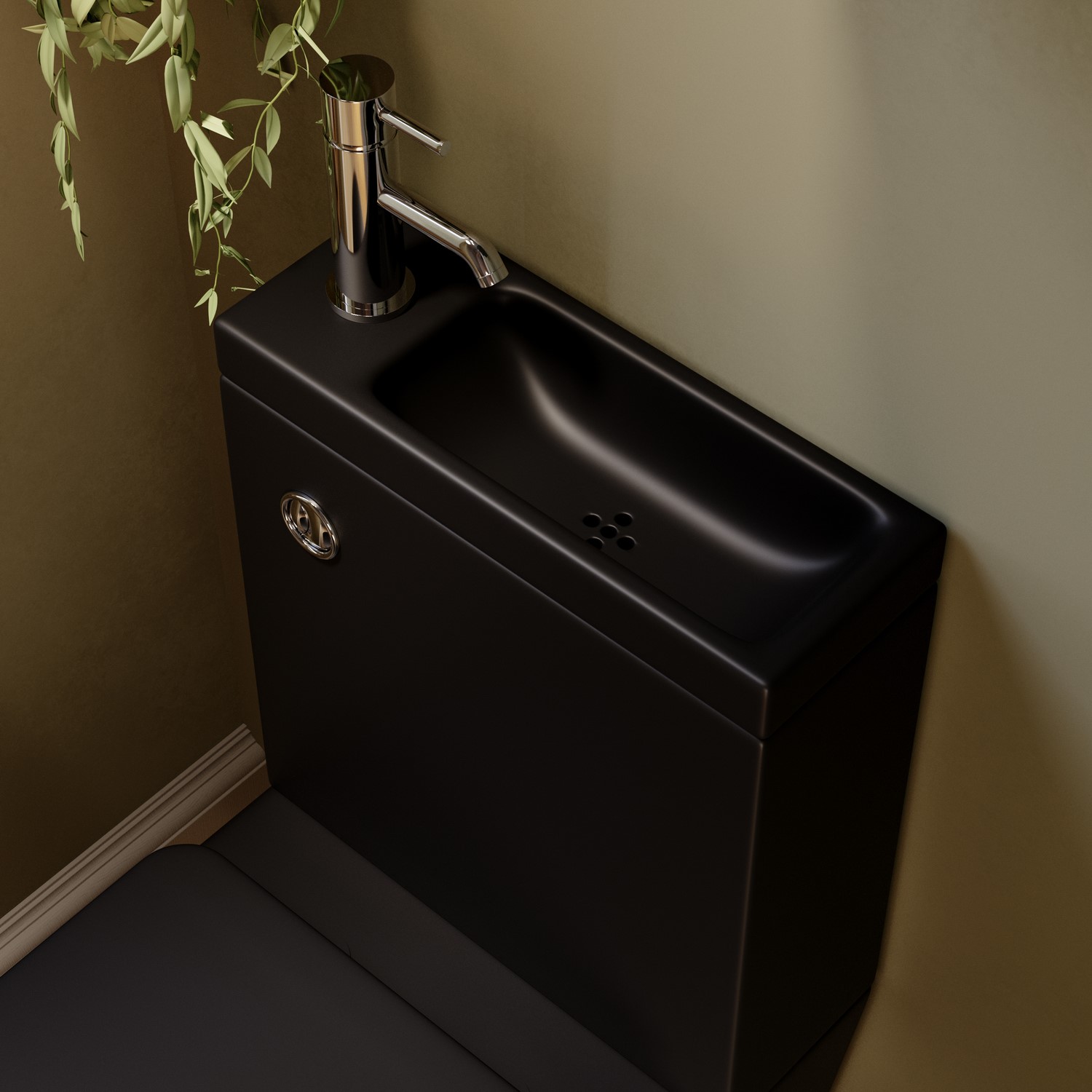 Toilet & Sink Combo: Extra short on space? This space-saving close-coupled toilet comes with a built-in sink on top, a matching tap and a push button, perfect for en-suites or cloakroom toilets. The closed-back design hides any unsightly pipework and makes it easier to clean.