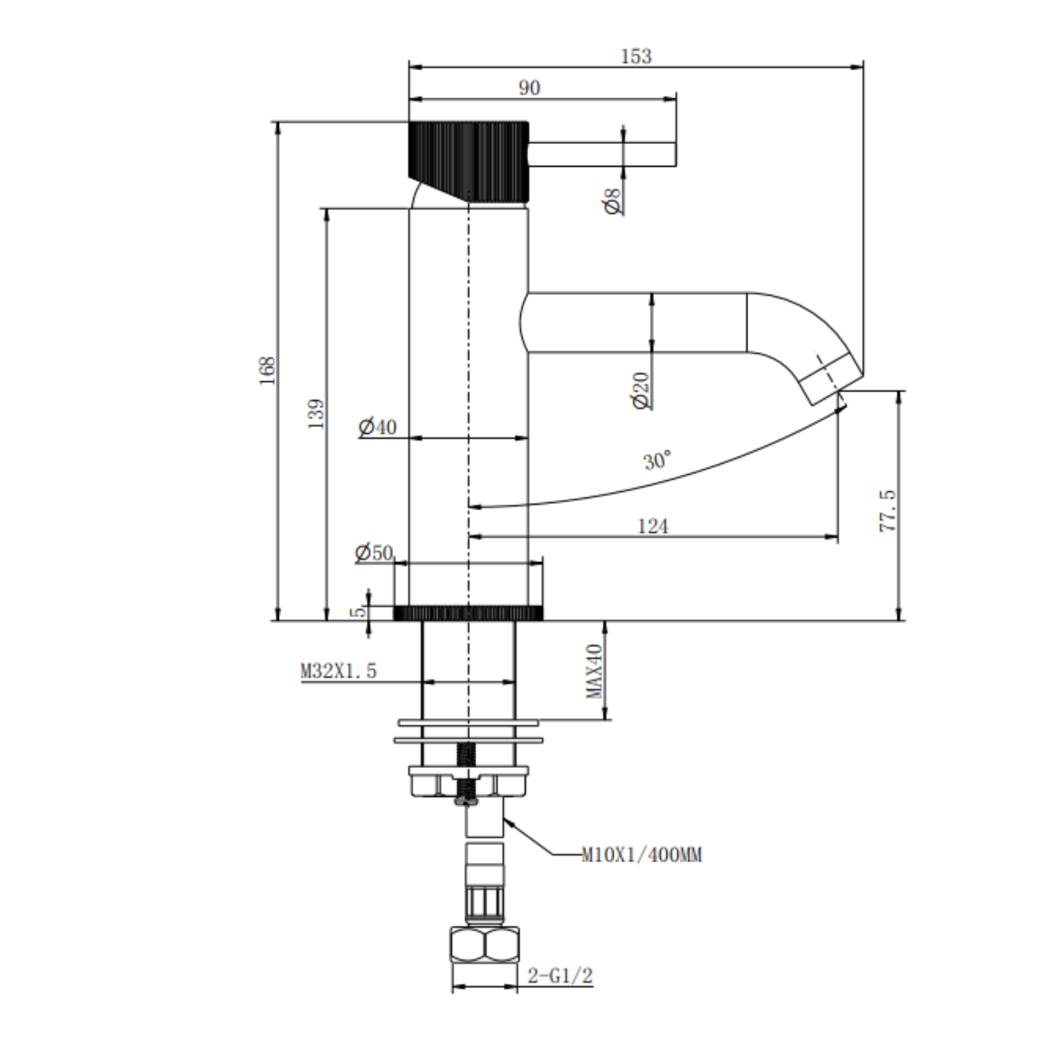 - Flexi hose length: 400mm