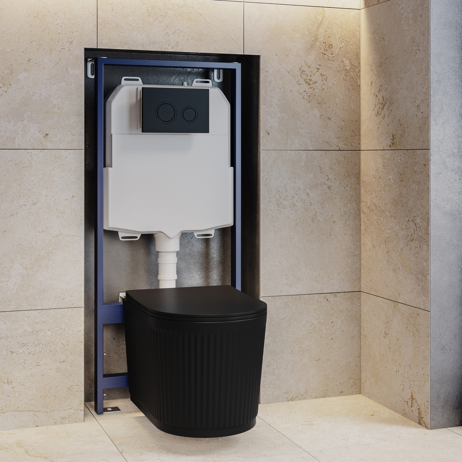 1160mm Mechanical WC Fixing Frame and Cistern: This set includes the 1160mm mechanical WC fixing frame and cistern, providing a secure, space-saving solution that allows for easy installation and durability. The flush is finished in black to match your bathroom theme.