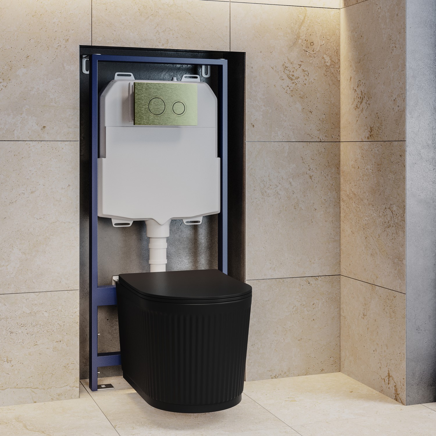 1160mm Mechanical WC Fixing Frame and Cistern: This set includes the 1160mm mechanical WC fixing frame and cistern, providing a secure, space-saving solution that allows for easy installation and durability. The flush is finished in brushed brass to match your bathroom theme.