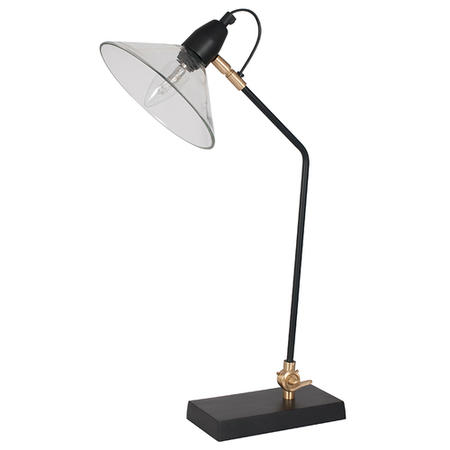 A beautifully stylish, contemporary adjustable task table lamp. With the glass cone shade, black base and brass coloured detailing; this lamp creates your loft look immediately.
