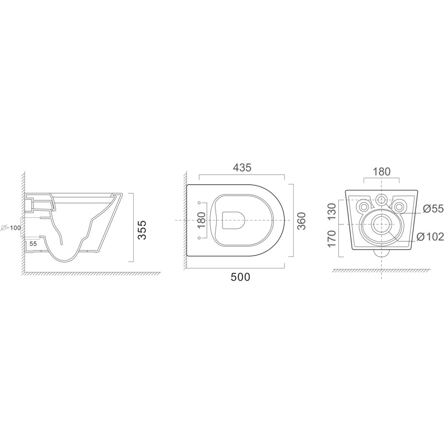 - Mounting: Wall hung
