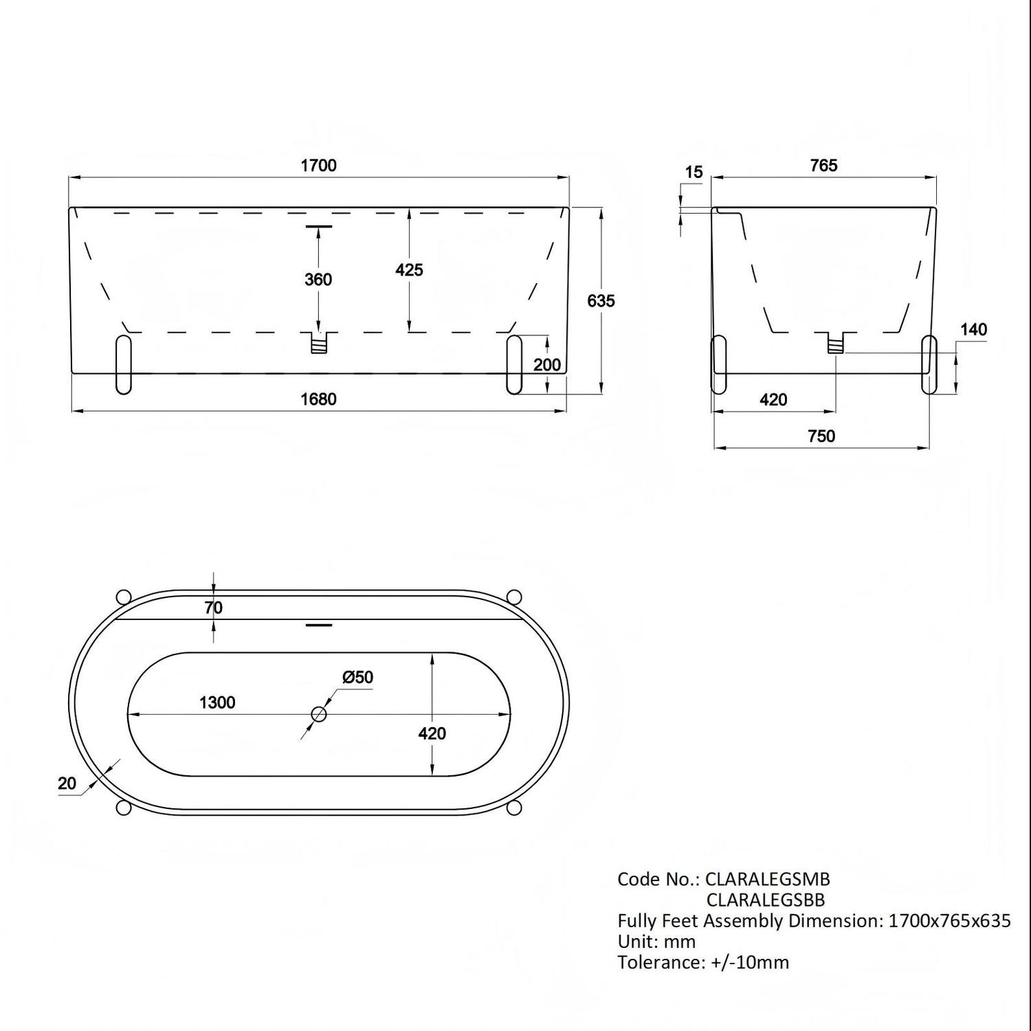Crafted from high-quality acrylic, this bath is warm to the touch and retains heat for longer soaks. The non-porous, smooth surface is easy to clean, ensuring your bath stays looking pristine for years. The brushed brass stainless steel legs and the adjustable feet support the bath, offering both striking contrast and long-lasting stability. Perfect for both modern and classic interiors, the Clara bath is the ultimate blend of luxury, practicality, and timeless design. Backed by a comprehensive 5-year manufacturer’s warranty for added peace of mind.