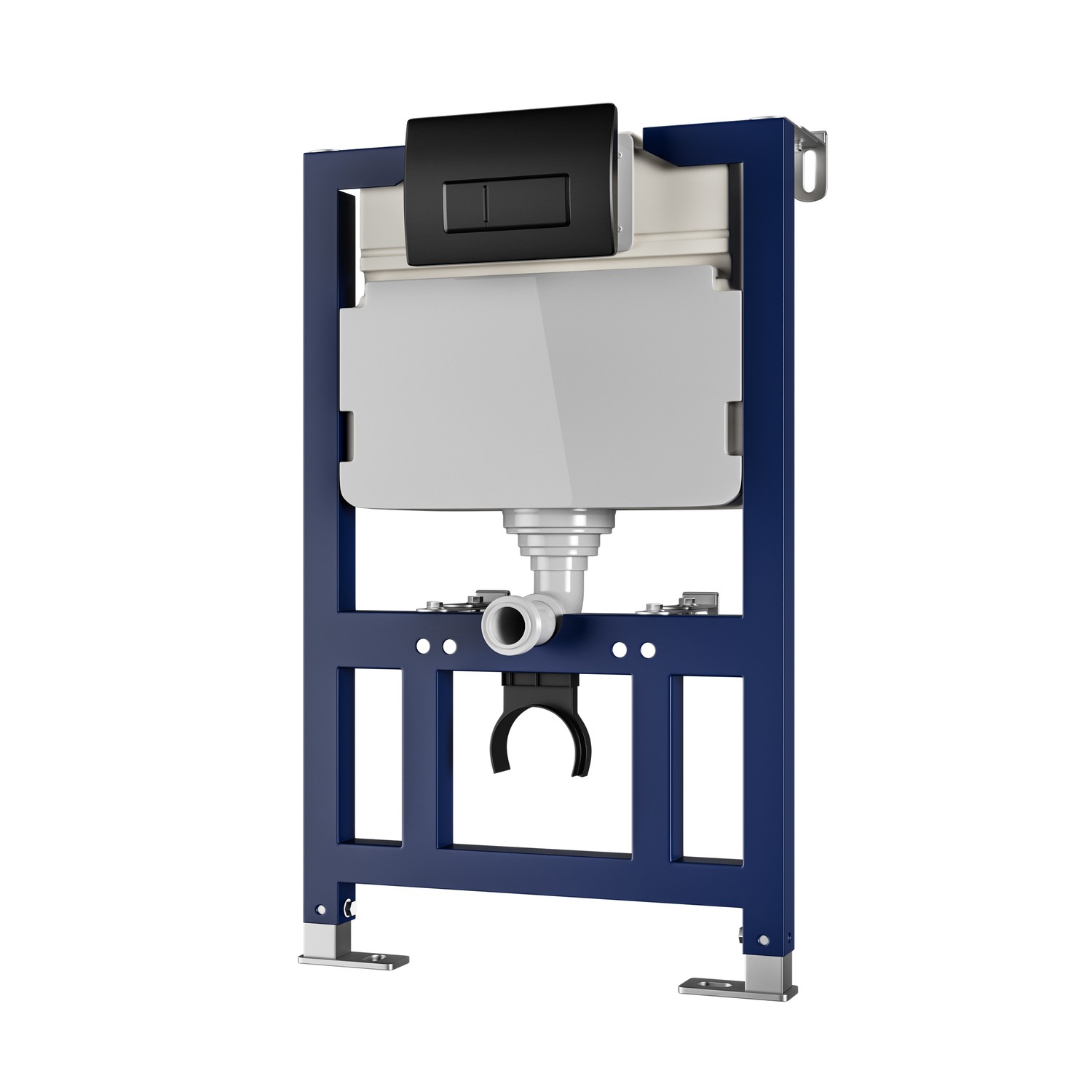This toilet is complemented by the 820mm Pneumatic Compact Frame & Cistern is a space-saving, modern solution for smaller bathrooms and compact spaces, featuring a quiet pneumatic mechanism, flexible installation, durable construction, and a sleek design that complements various decor styles. The adjustable frame (0-200mm) allows for flexible installation to fit different wall configurations.