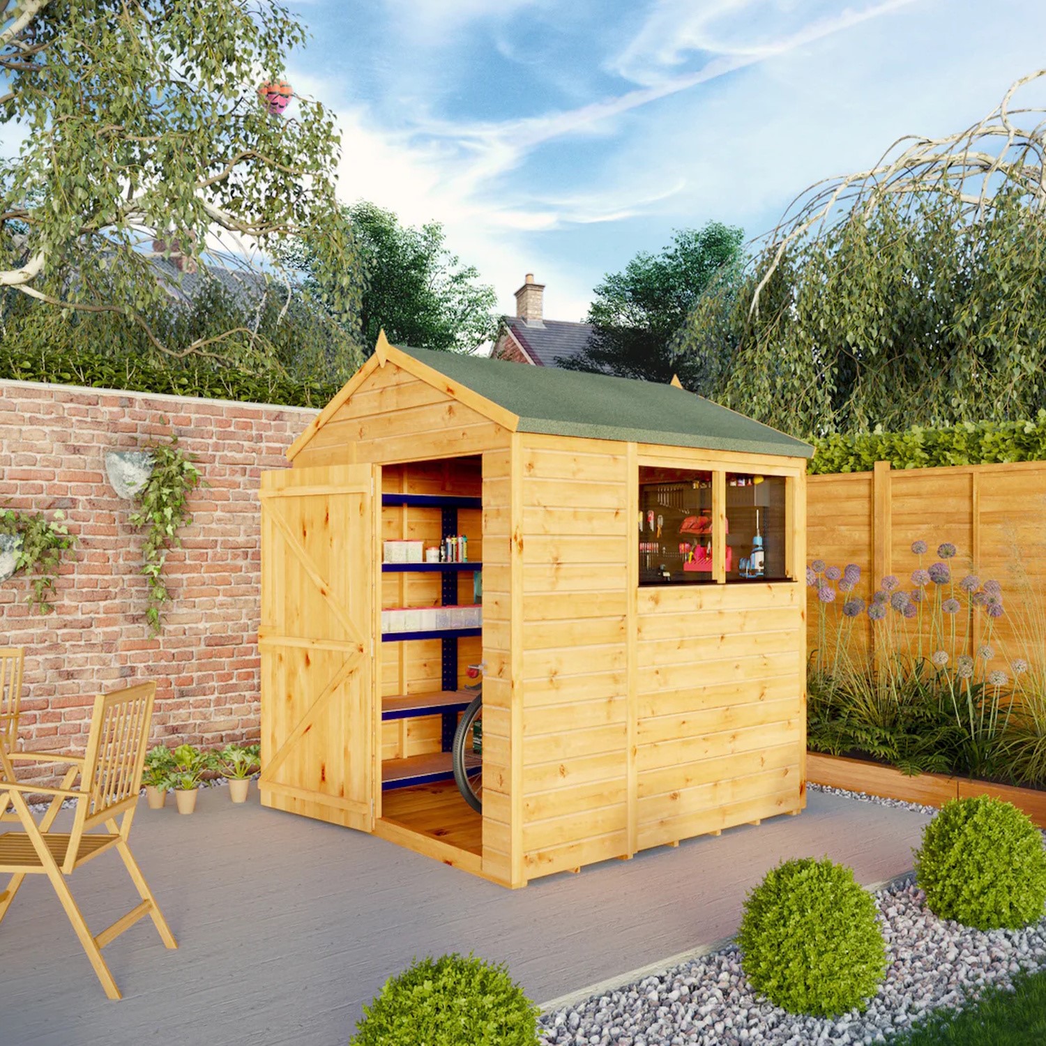 The Mercia 6 x 6 Woodsman Shiplap Apex Shed is a reliable and spacious garden storage solution, perfect for keeping your outdoor space organised. Built with durable shiplap cladding, it offers enhanced protection from the elements while maintaining a classic timber shed appearance. The apex roof design not only adds a traditional touch but also provides additional headroom and encourages efficient water runoff. Its sturdy timber construction ensures long-lasting use, making it ideal for storing garden tools, lawn equipment, or seasonal items. Manufactured from sustainably sourced timber, this shed combines practicality with environmentally conscious design, making it a smart addition to any garden.