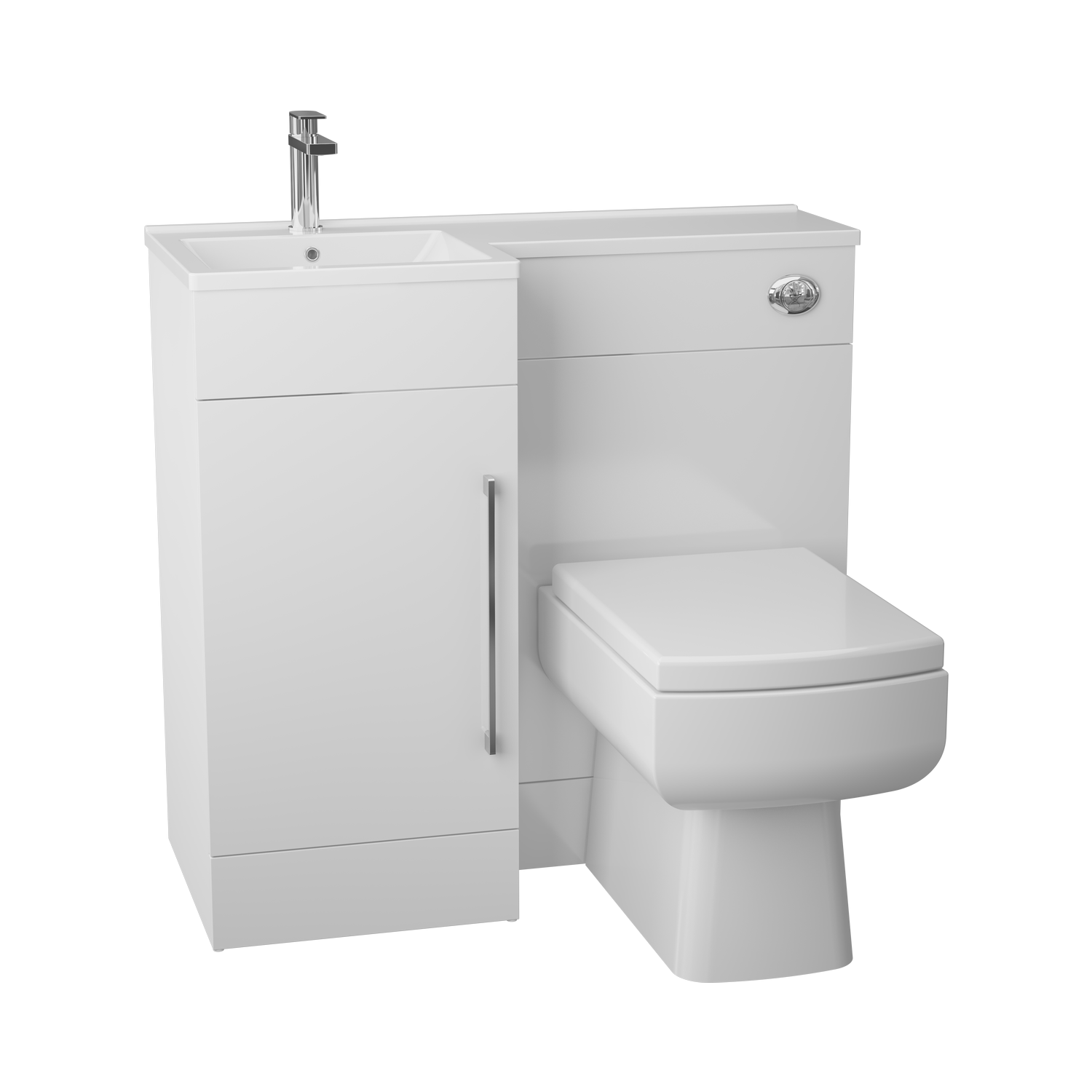 The Modern semi-recessed white gloss combination basin and WC unit helps to add extra storage to your bathroom. It features a contemporary look with the ultimate space saving solution. A toilet and sink combo helps to create more space in your bathroom by creating a fitted furniture design. This handy design combines three valuable bathroom suite items; toilet, basin and a storage cabinet in one neat unit making it ideal for cloakroom spaces. You can choose between a left or right hand version to match the specific layout of your own bathroom. This toilet and sink vanity unit is offered with a 10 year manufacturer's guarantee assuring you of its durability.