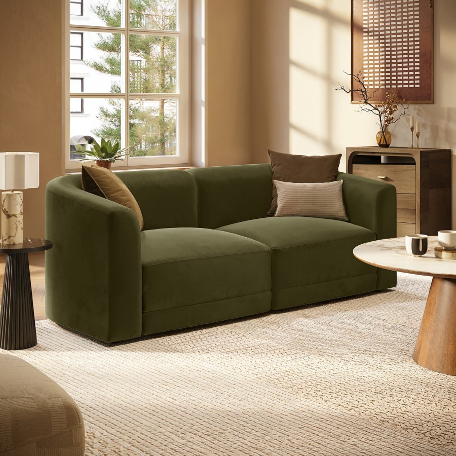 The Laine 3-Seater Modular Sofa combines modern design with gentle curves and a bold, rounded silhouette. Upholstered in soft, durable moss green velvet, it adds a calm, inviting splash of colour to any living space. Designed as a family sofa, it features deep seats, a low-profile modular form, and foam with pocket springs for superior comfort and support. Spacious, stylish, and versatile, this sofa is the perfect place to unwind.