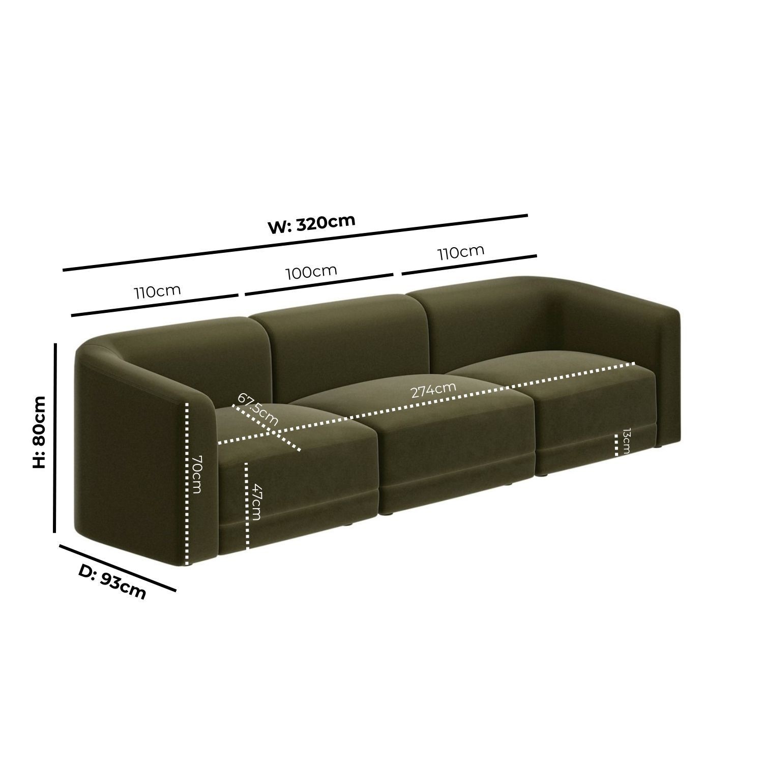 The Laine 4-Seater Modular Sofa combines modern design with gentle curves and a bold, rounded silhouette. Upholstered in soft, durable moss green velvet, it adds a calm, inviting splash of colour to any living space. Designed as a family sofa, it features deep seats, a low-profile modular form, and foam with pocket springs for superior comfort and support. Spacious, stylish, and versatile, this sofa is the perfect place to unwind.