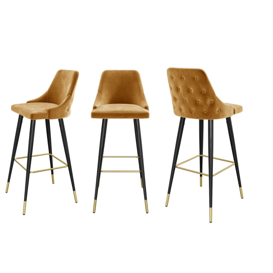 3 x Mustard Velvet Kitchen Island Stools - Maddy