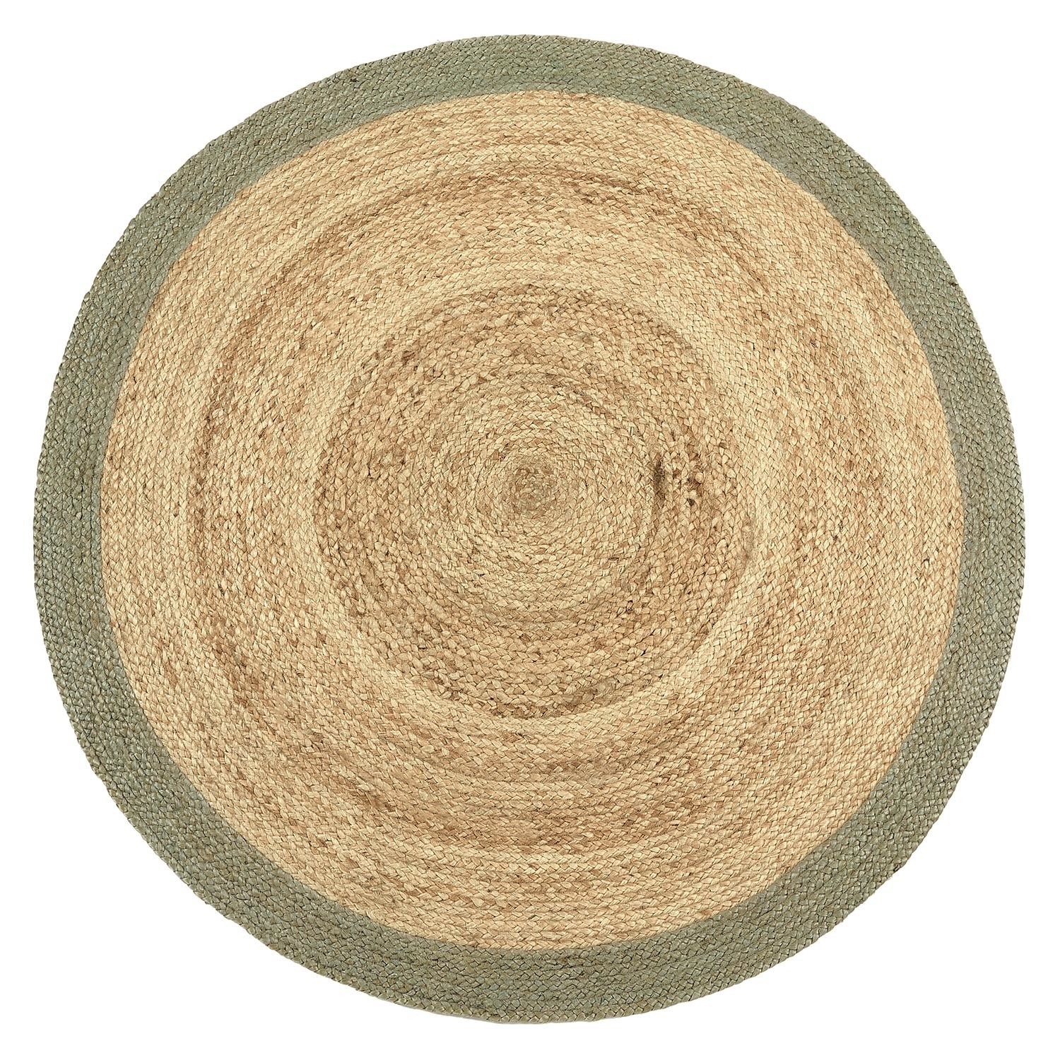 Soft Sage Green Border Detail: A muted green edge frames the natural jute centre, adding subtle colour and a modern finish to classic craftsmanship.