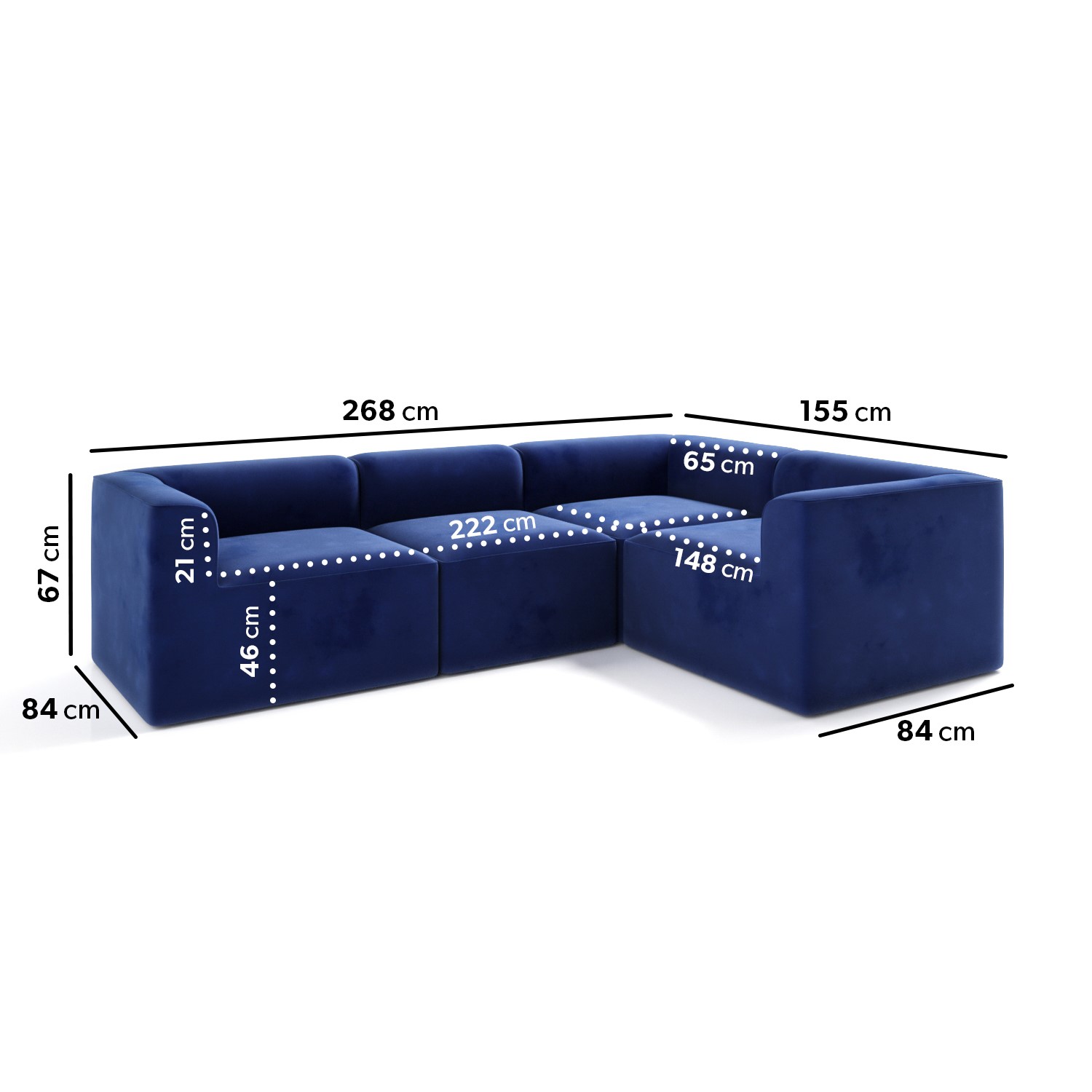 Navy Velvet Right Corner Section - Modular Sofa Piece - Hendrix