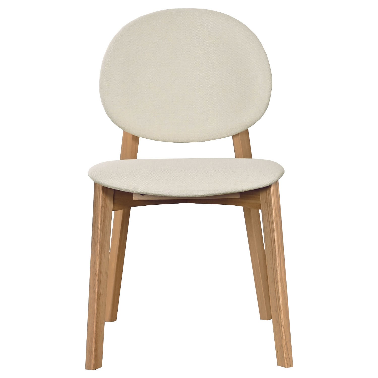 4 x Cream Upholstered Dining Chairs with Oak Wood Legs - Leona