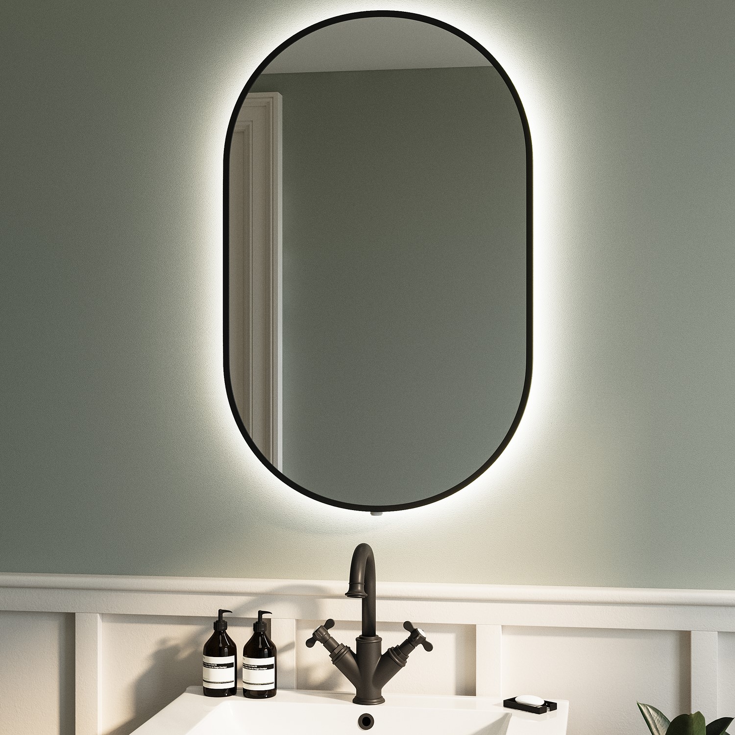 Backlit Illumination: The modern oval shape is beautifully highlighted with cool white lighting.