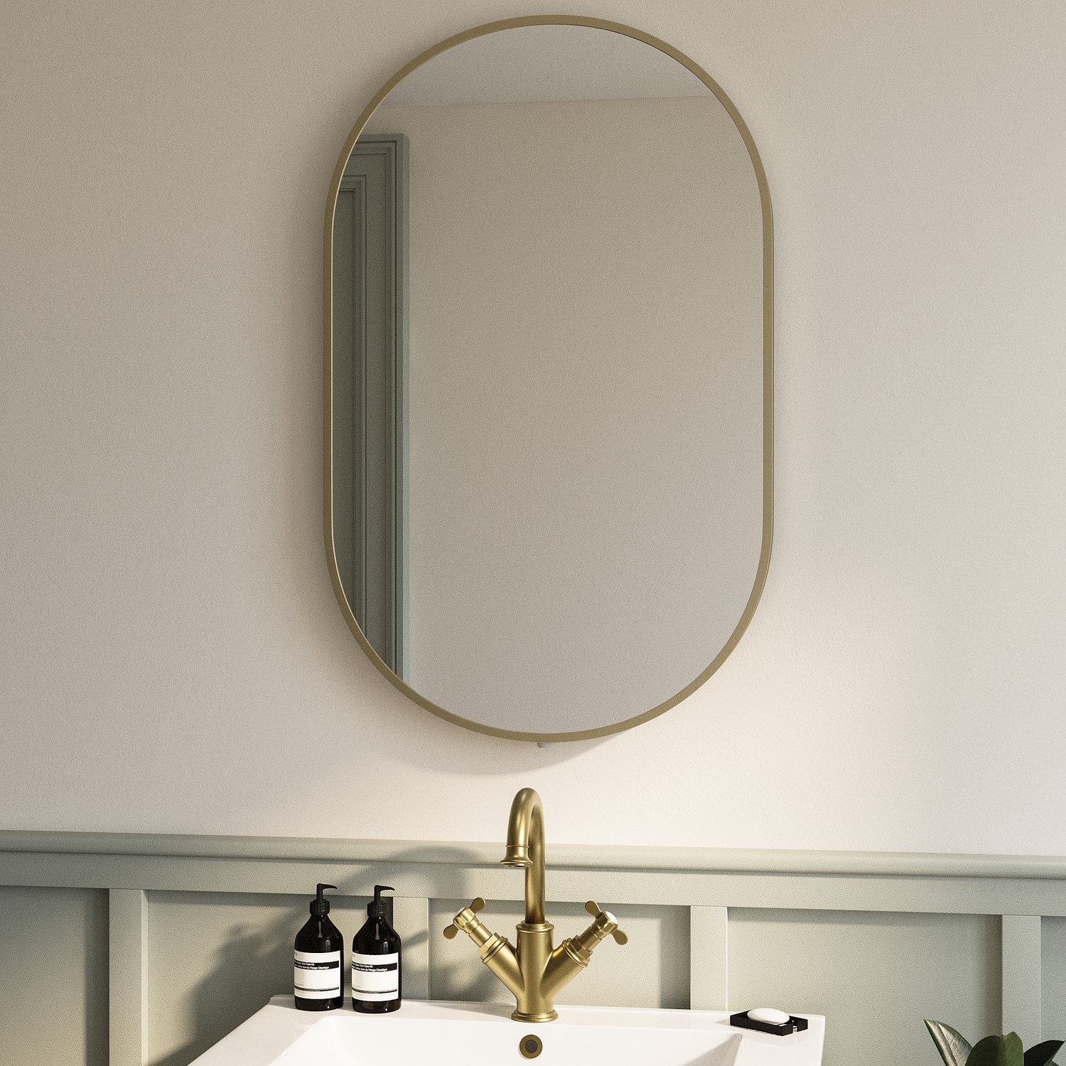 Transform your bathroom with this modern oval backlit bathroom mirror that combines style with practicality. This battery operated backlit bathroom mirror provides crisp, cool white illumination that's not only aesthetically pleasing but energy-saving too. Since it's battery operated, installation is straightforward and you can position it anywhere without worrying about electrical connections. The modern brushed brass frame adds a sophisticated touch whilst remaining lightweight for easy handling.