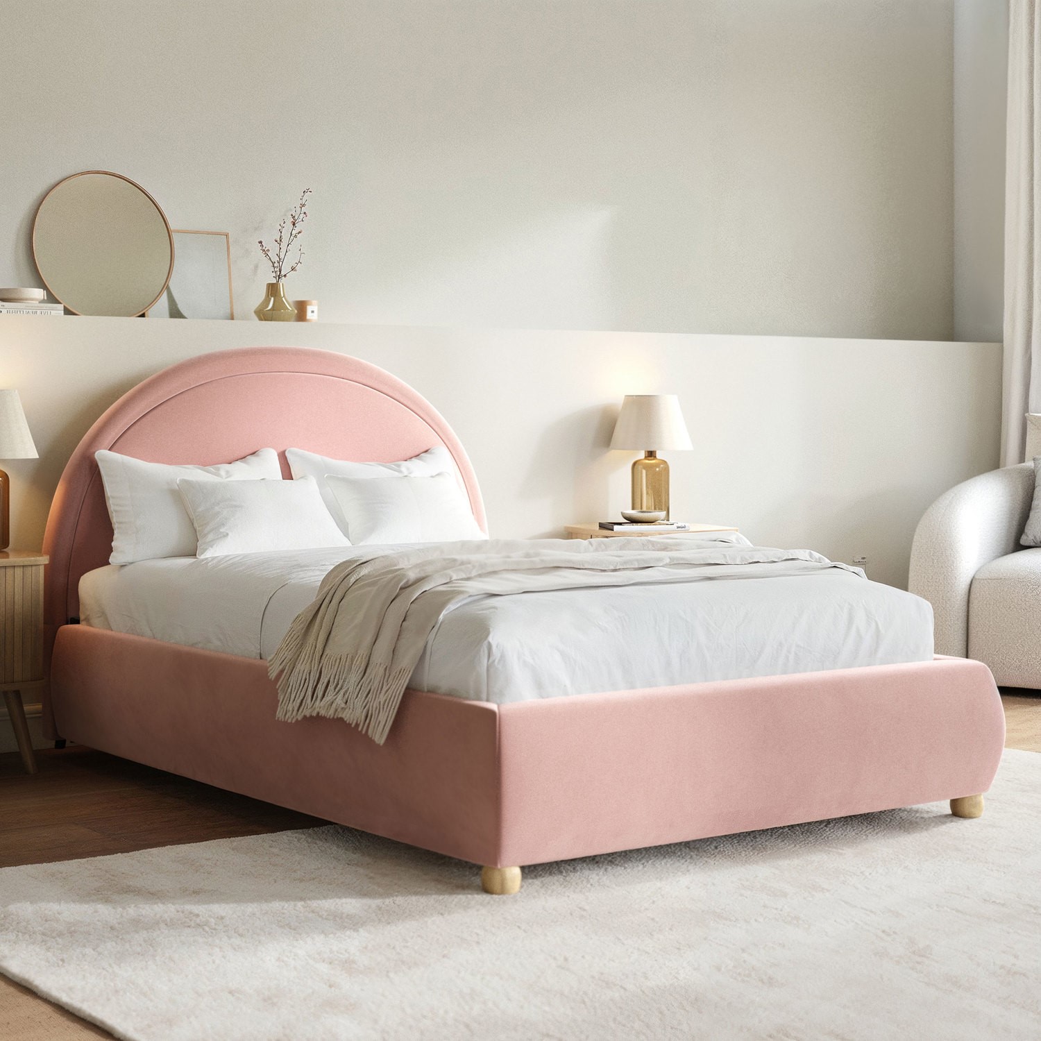 Soft Upholstery: Upholstered in a soft pink velvet, this bed offers a cosy and inviting feel while making it a stunning addition to any interior.