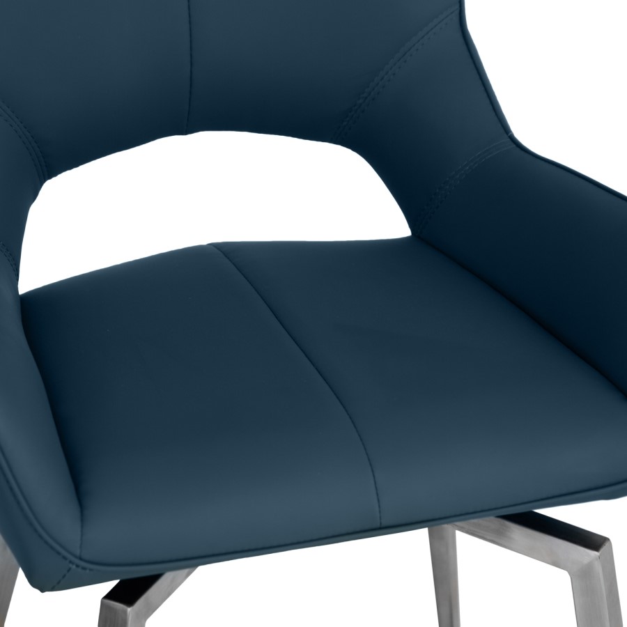 This pair of Navy Blue swivel dining chairs are finished in a PU fabric which is durable and easy to clean. Perfect for ease of rising from the dining/kitchen table, due to swivel function. Great for customers looking for space saving chairs, as there is no need to slide chair away from the table, just swivel to the side and rise.