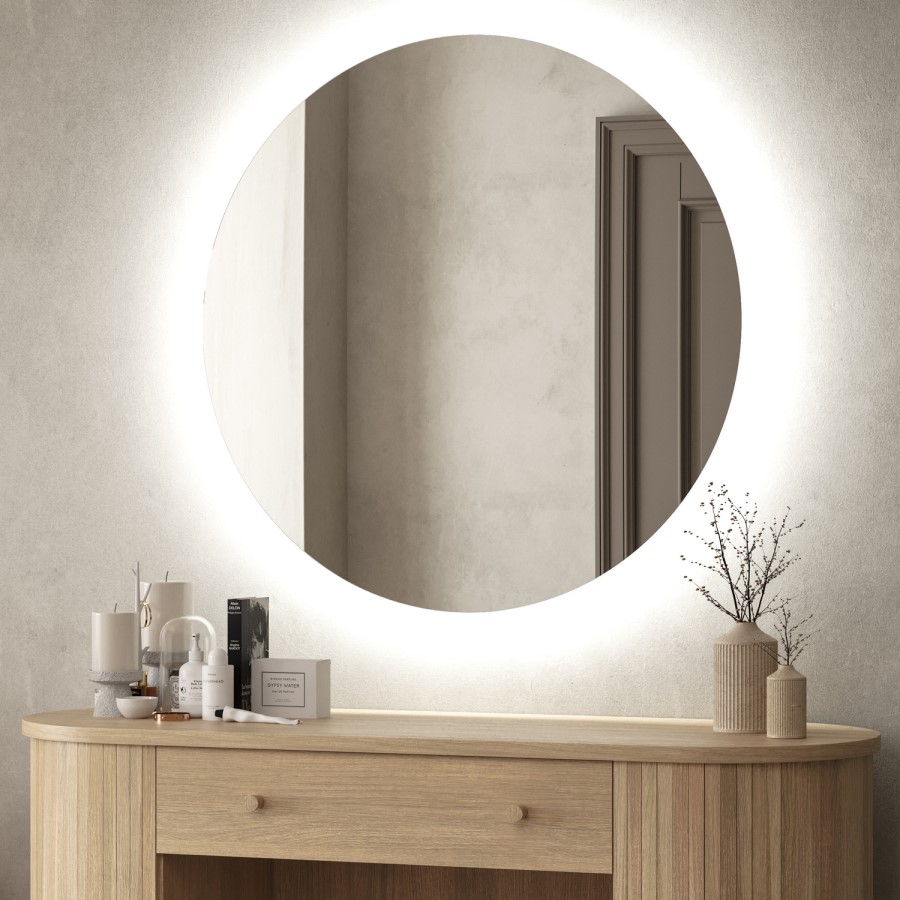 Backlit Illumination: Cool backlighting highlights the mirror’s circular shape, enhancing its contemporary aesthetic to brighten up your space.