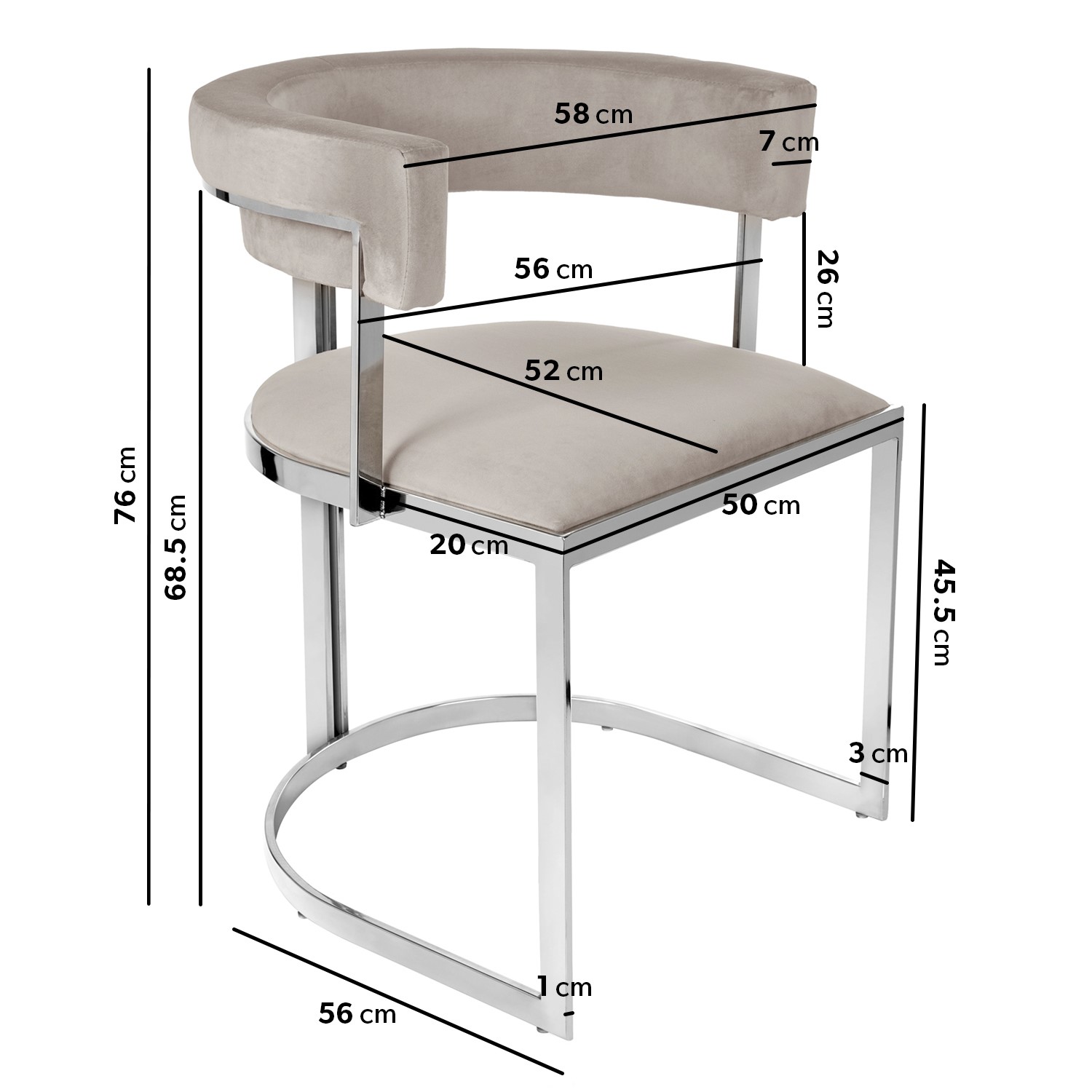 - Finish: Velvet upholstery with chrome frame