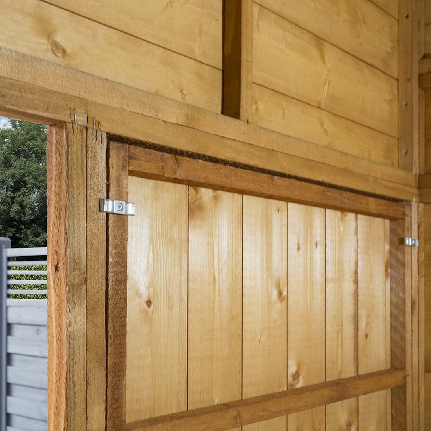 The Rowlinson Garden Bar is the perfect addition to any outdoor space, offering a stylish and functional solution for entertaining at home. Crafted from durable timber, this charming garden bar features a practical lift-up serving hatch and fold-down counter, making it easy to serve drinks and snacks to guests. The internal storage area, accessed via a side door, provides ample space for keeping bar accessories सुरक्षित and organised. With its classic wooden finish and weather-resistant sloped roof, this garden bar effortlessly combines practicality with timeless garden appeal, creating a welcoming focal point for social occasions.