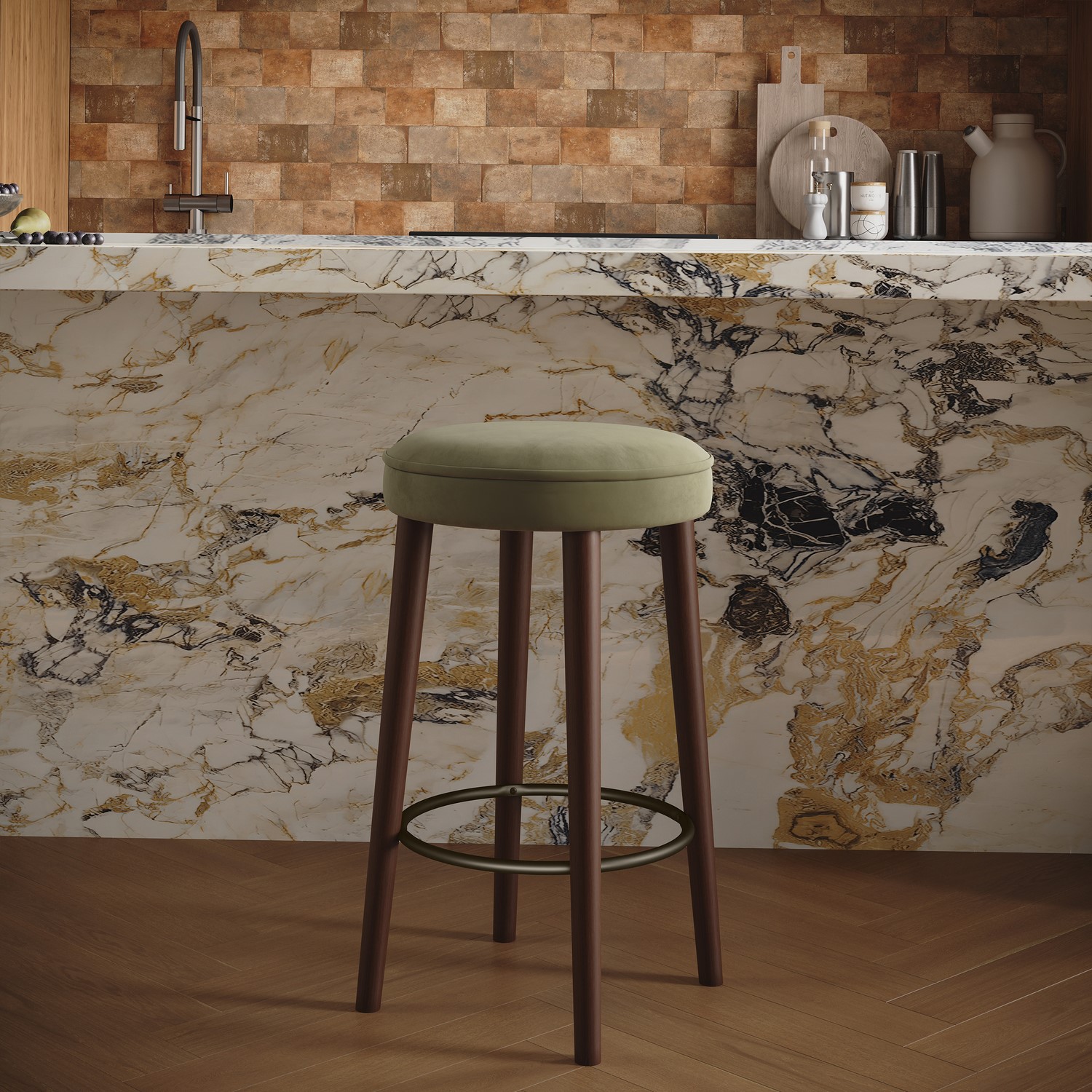 Elegant Brass Footrest: Adds a sophisticated contrast while providing practical support and elevates your kitchen