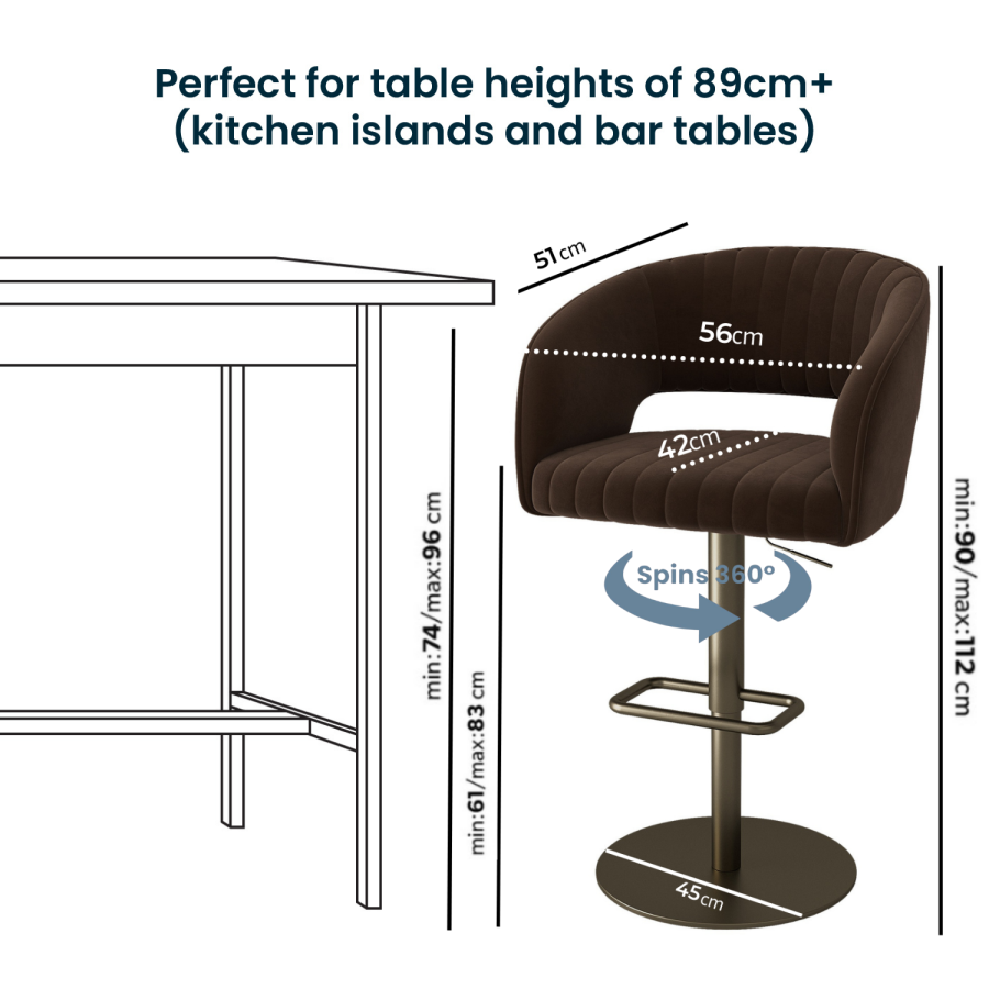 Suitable for bar tables and kitchen islands with heights of 89-109 cm, please measure before purchasing.