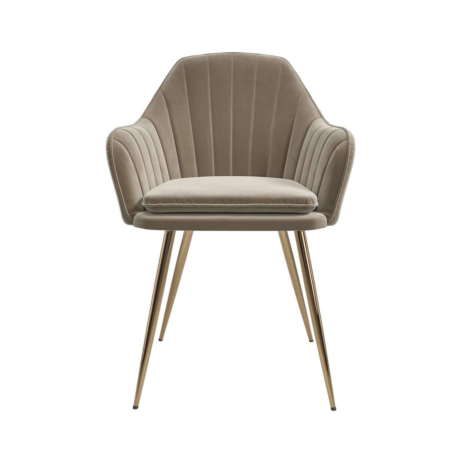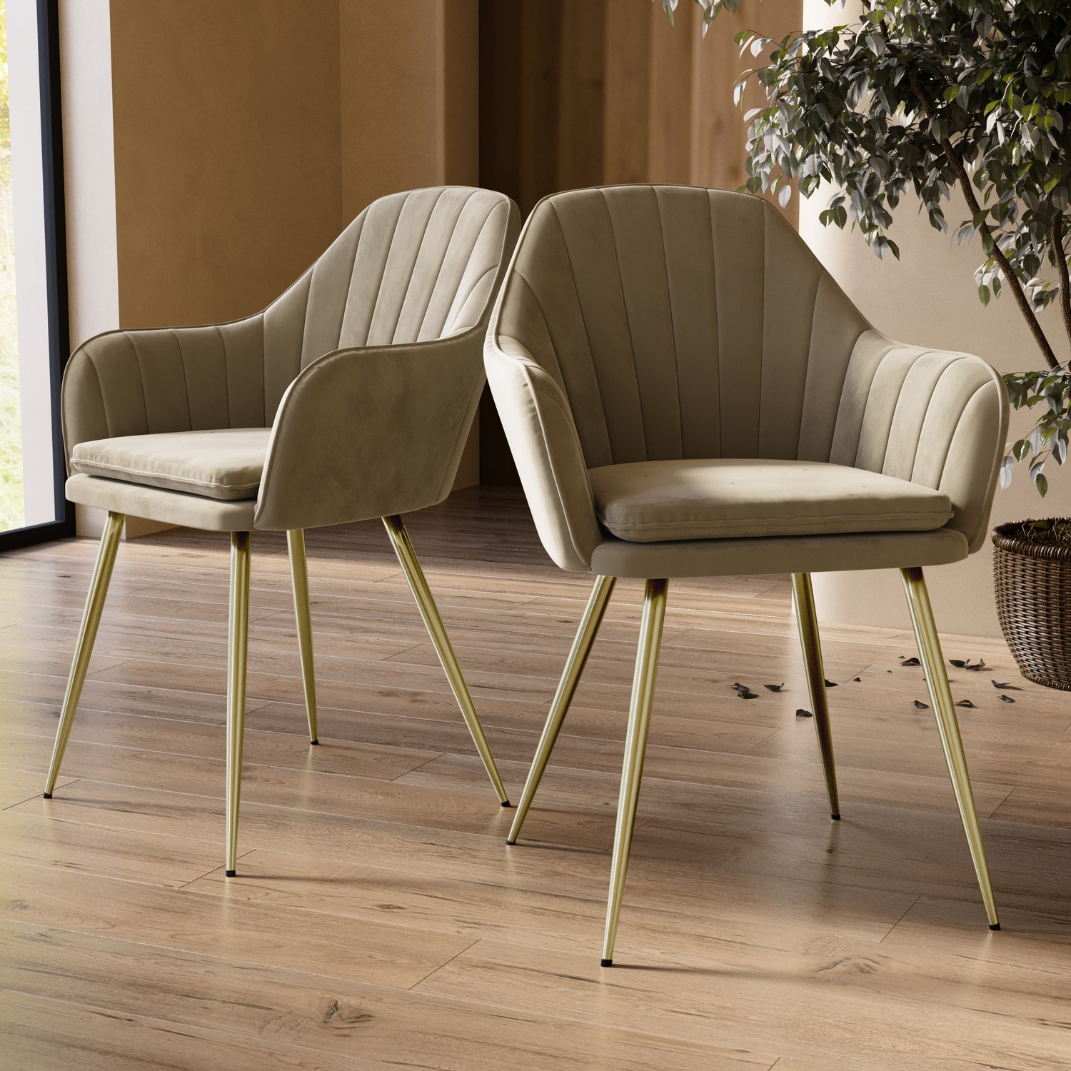 Complete your dining room with this pair of dining chairs. Finished in mink matt velvet with brushed brass legs, the two-tone design brings a fresh look to your space with a neutral modern touch. They coordinate beautifully with any of our dining tables to finish the look.