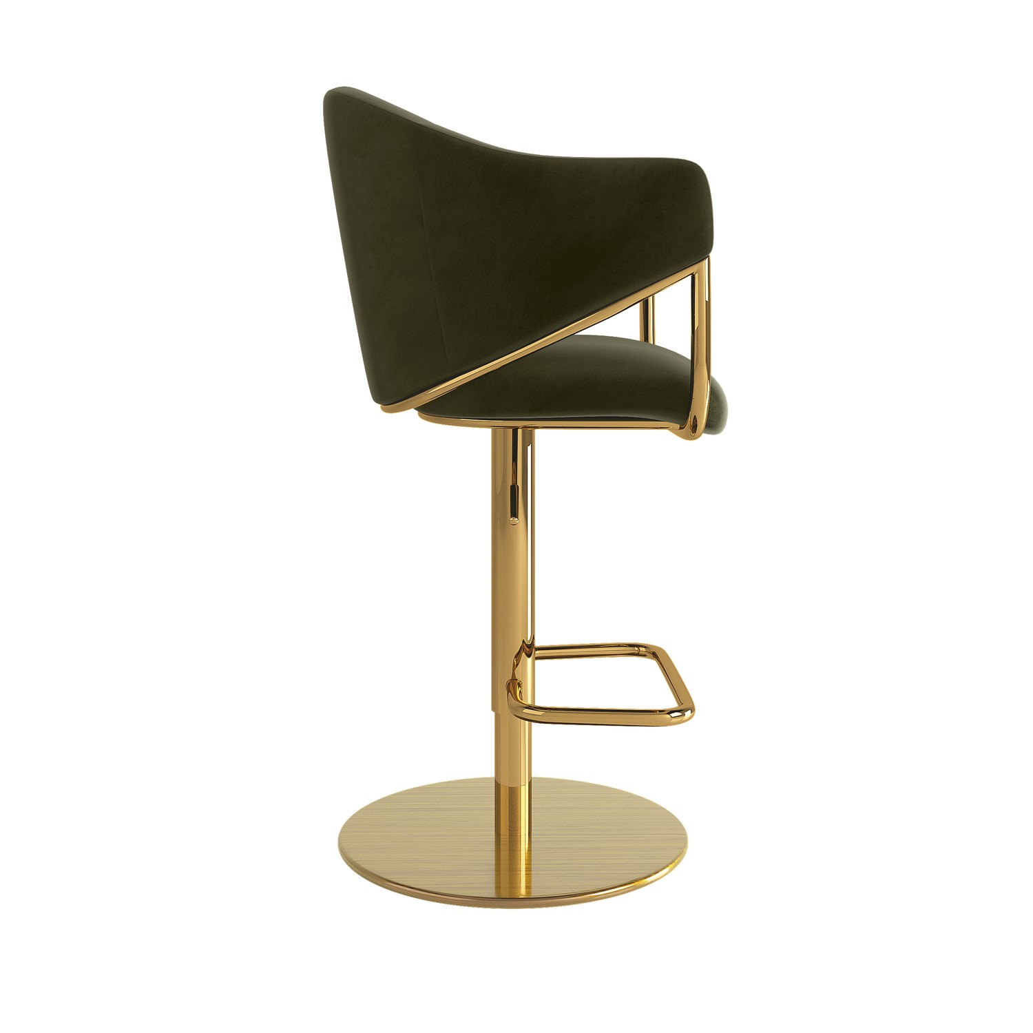 Luxurious Upholstery: Crafted with soft olive green velvet, this barstool adds a warm and elegant touch to any space.