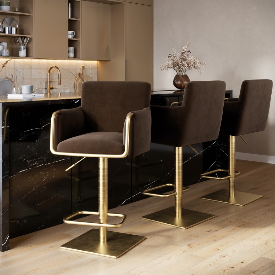 Luxurious Upholstery: Crafted with soft brown velvet, this barstool adds a warm and elegant touch to any space.