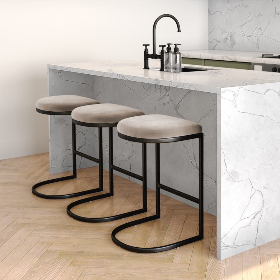 3 x Mink Velvet Kitchen Stools with Black Base - Stella