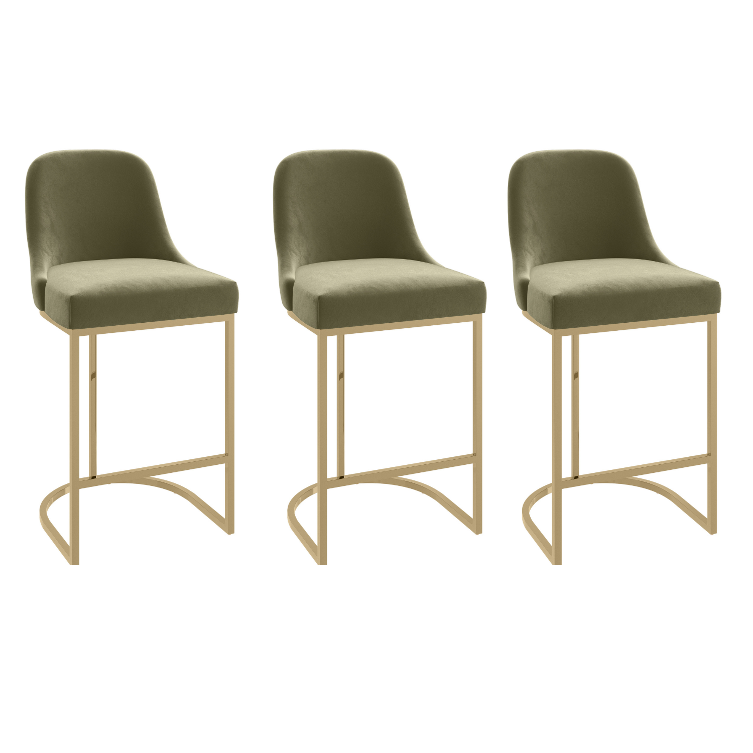 Elevate your kitchen or breakfast bar with these elegant sage green velvet kitchen stools, designed to combine modern luxury with everyday comfort. The sage green velvet upholstery brings a warm, inviting feel, while the sleek gold metal frame adds a sophisticated touch that instantly enhances your space. A gently curved backrest and deeply padded seat ensure supportive, comfortable seating, perfect for enjoying meals and drinks. Finished with a built-in footrest for added stability and ease, this stool offers the ideal blend of style and practicality. Whether styled as a single statement piece or grouped for a cohesive look, it brings refined charm and contemporary elegance to any home.