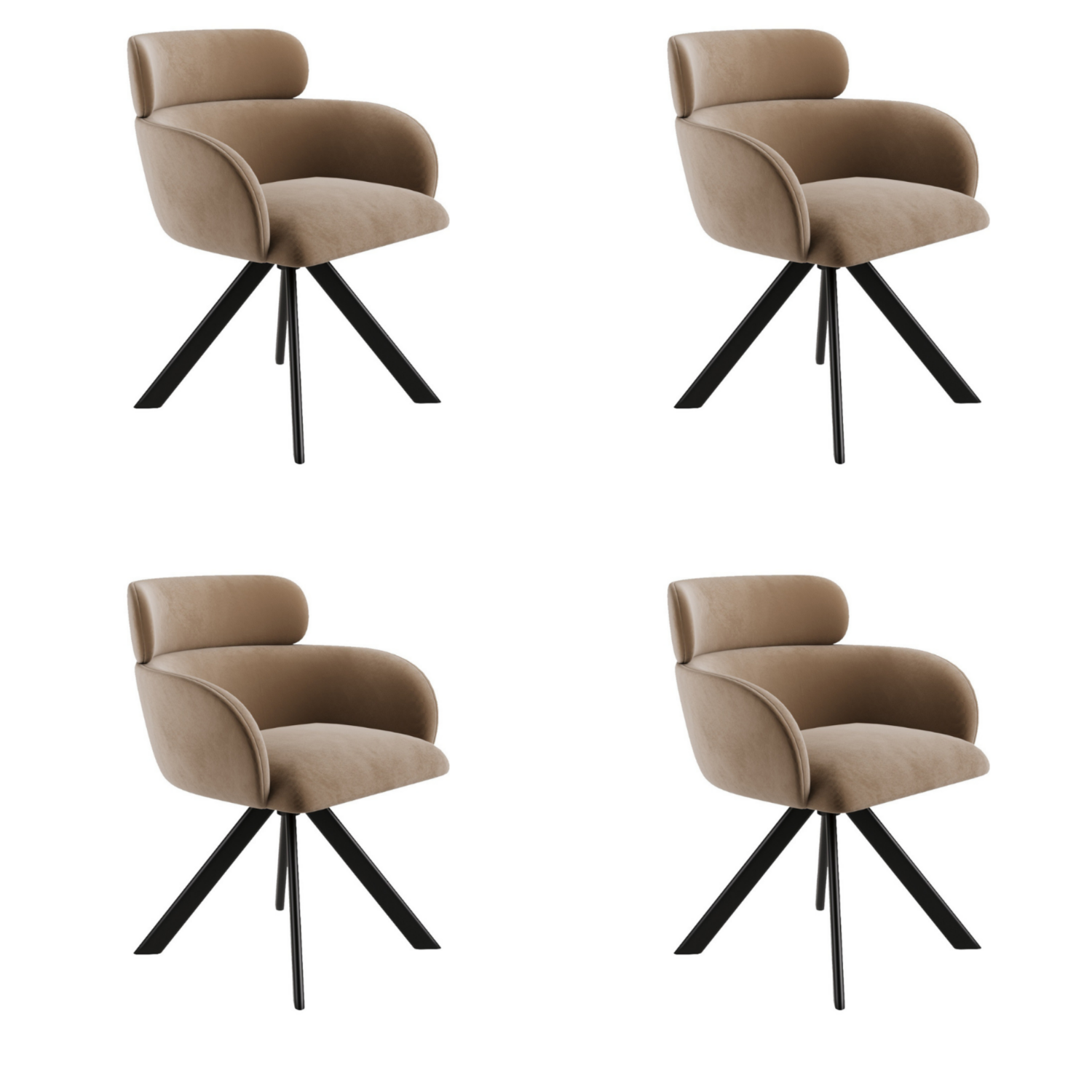 The Isla swivel dining chairs in beige velvet are a versatile addition to any dining or kitchen space. The gently curved shape and integrated armrests provide both style and ergonomic support, while the soft velvet finish brings a luxurious texture. With 360° swivel and an auto-return feature, they’re as functional as they are fashionable. The matte black legs offer bold contrast and reliable stability, making this pair of chairs a perfect match for modern, Scandi, or neutral dining setups.