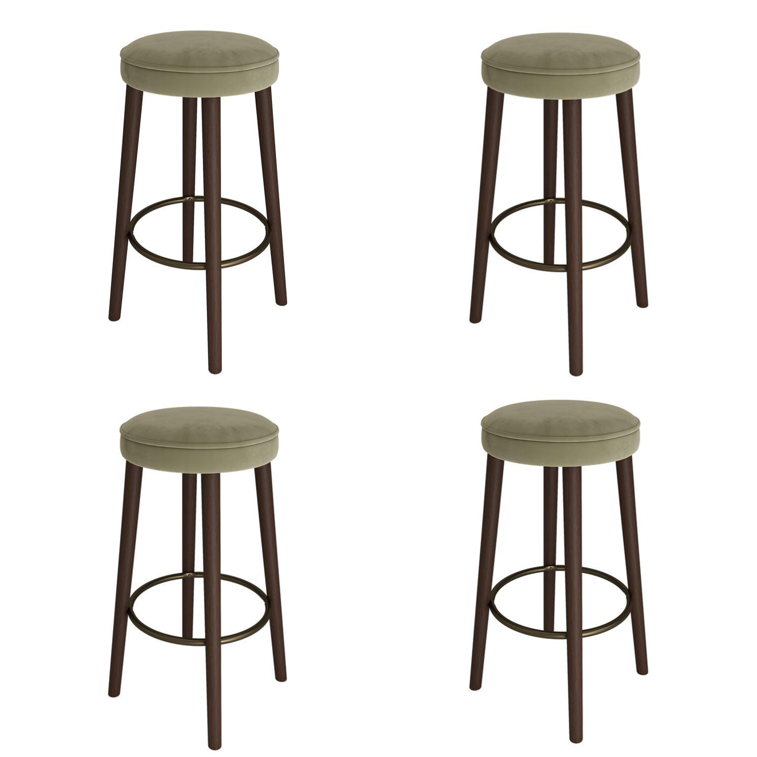 These Gatsby Counter Stools blends modern elegance with everyday comfort, making it a standout addition to any kitchen or breakfast bar. Upholstered in a soft sage green velvet, the thick, cushioned seat offers a plush and inviting feel that enhances both style and comfort. The sleek walnut finish tapered legs introduce a mid-century modern edge, while the brass footrest adds a touch of elegance. Chic, stylish, and versatile, the Gatsby stool elevates your space with its refined design and effortless charm.