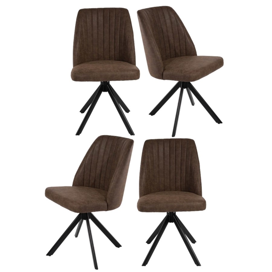 The ideal addition to a smaller dining space, these 4 dining chairs swivel making it easy to get in and out. The brown faux leather finish with vertical stitch detailing creates a stunning modern finish that’ll look great in any interior. Pair with the matching pieces in the Logan range for the perfect look.