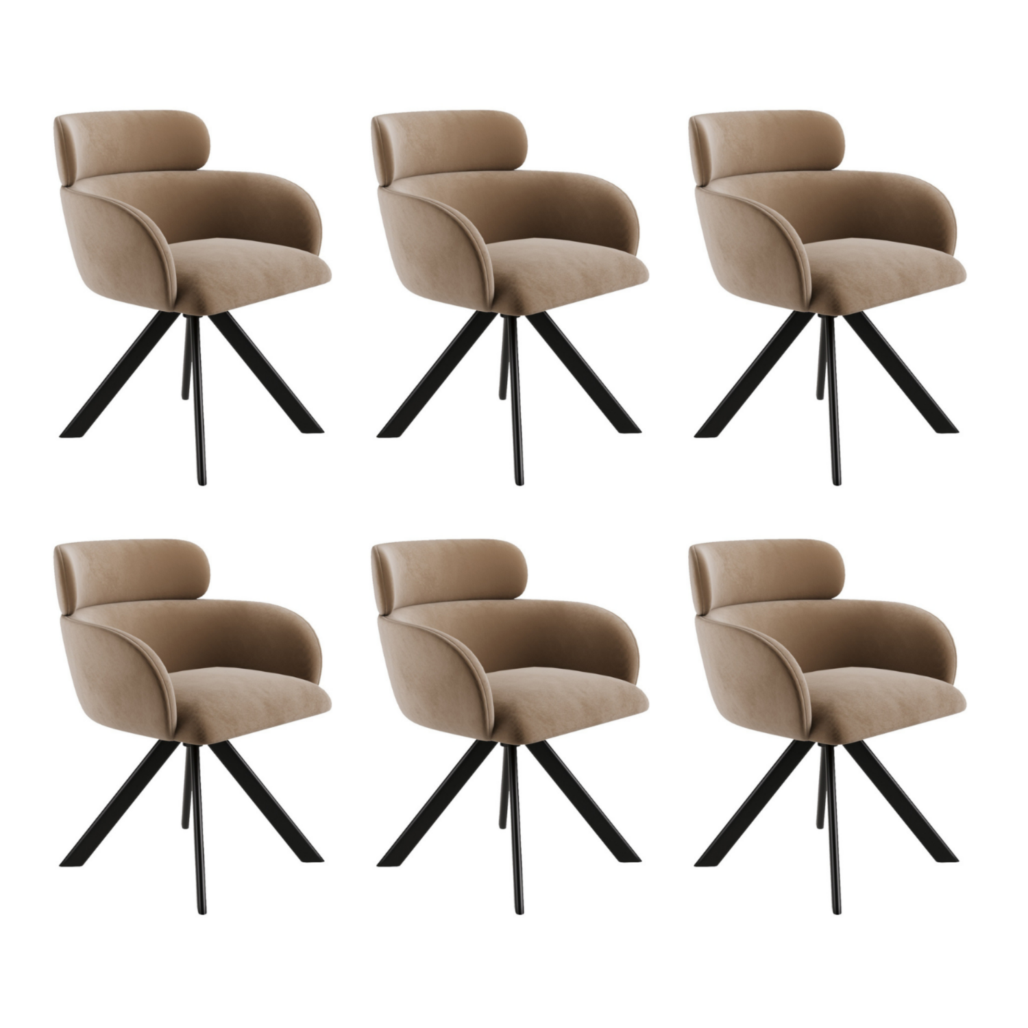 The Isla swivel dining chairs in beige velvet are a versatile addition to any dining or kitchen space. The gently curved shape and integrated armrests provide both style and ergonomic support, while the soft velvet finish brings a luxurious texture. With 360° swivel and an auto-return feature, they’re as functional as they are fashionable. The matte black legs offer bold contrast and reliable stability, making this pair of chairs a perfect match for modern, Scandi, or neutral dining setups.