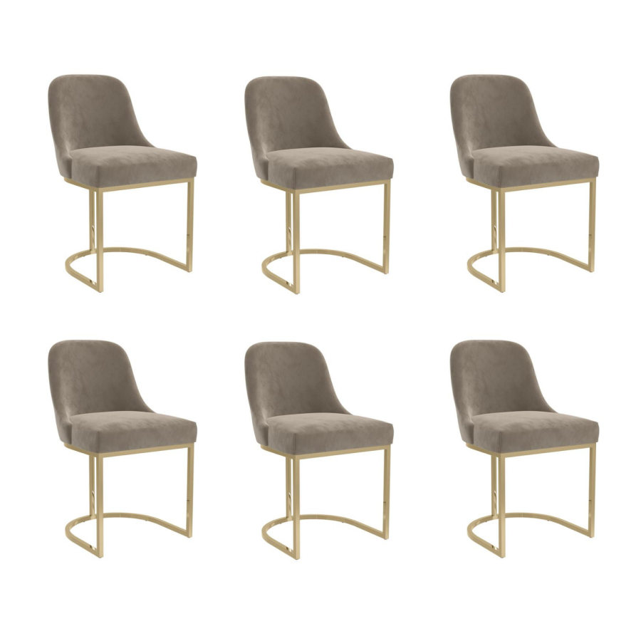 Elevate your dining space with these Callie dining chairs, designed to bring modern elegance and everyday comfort into your home. The rich mink velvet upholstery adds a luxurious touch, while the gold metal legs provide a stylish contrast that instantly enhances your decor. Crafted with gently curved, padded seats, the chairs offer support and comfort ideal for long, relaxed meals. Whether styled with a sleek contemporary table or a more classic design, the Callie chairs deliver a refined look that completes any dining room with ease.